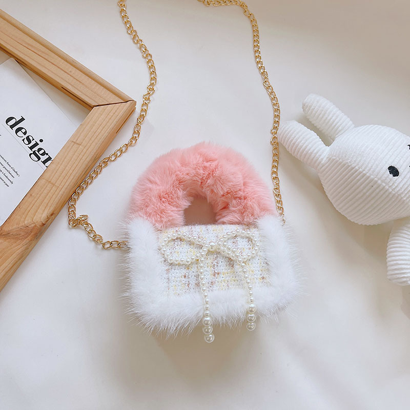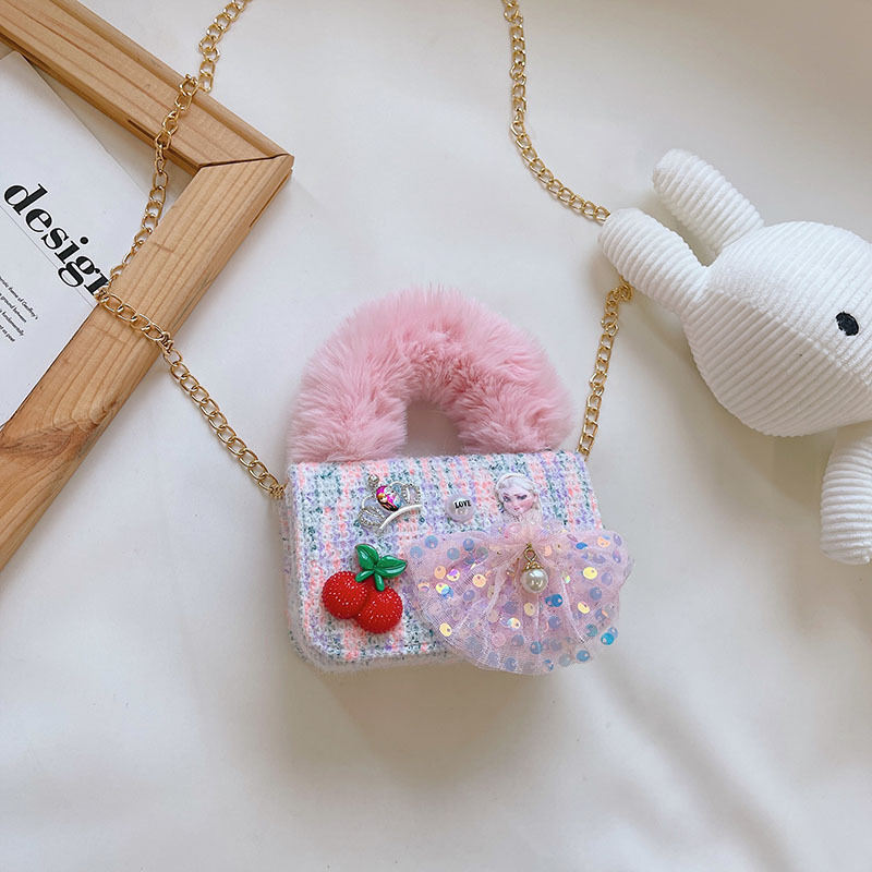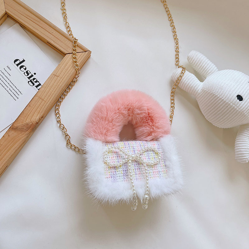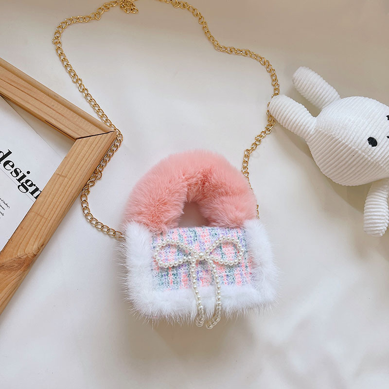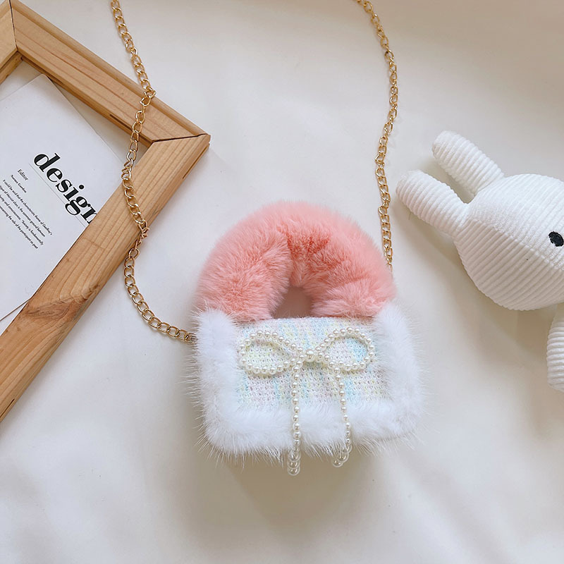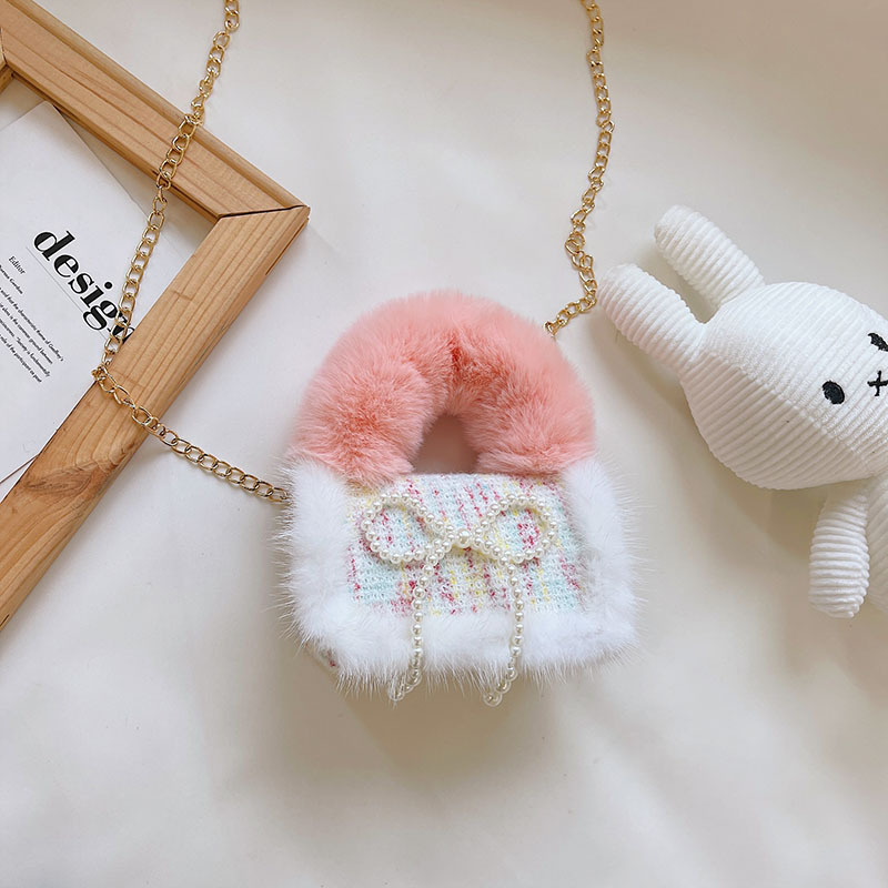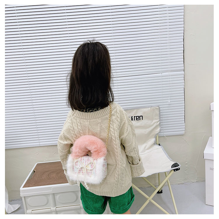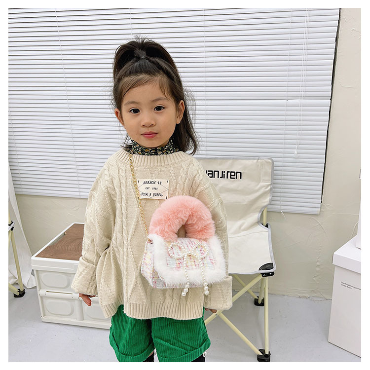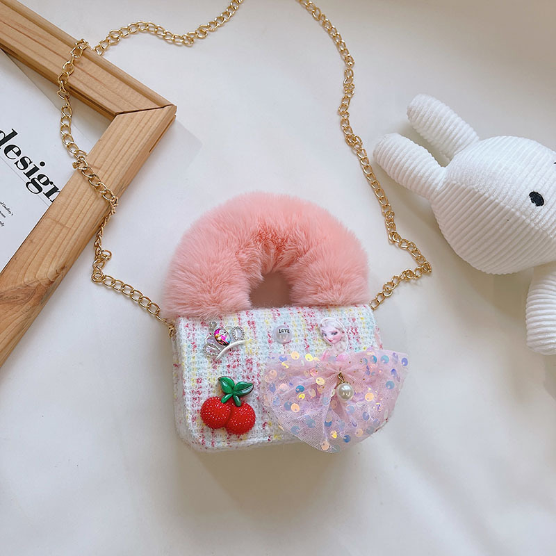 어린이 가방 2025 신상 숄더백 크로스백 플러시 소녀 동전 지갑 트렌디 리본 체인백