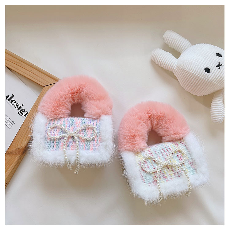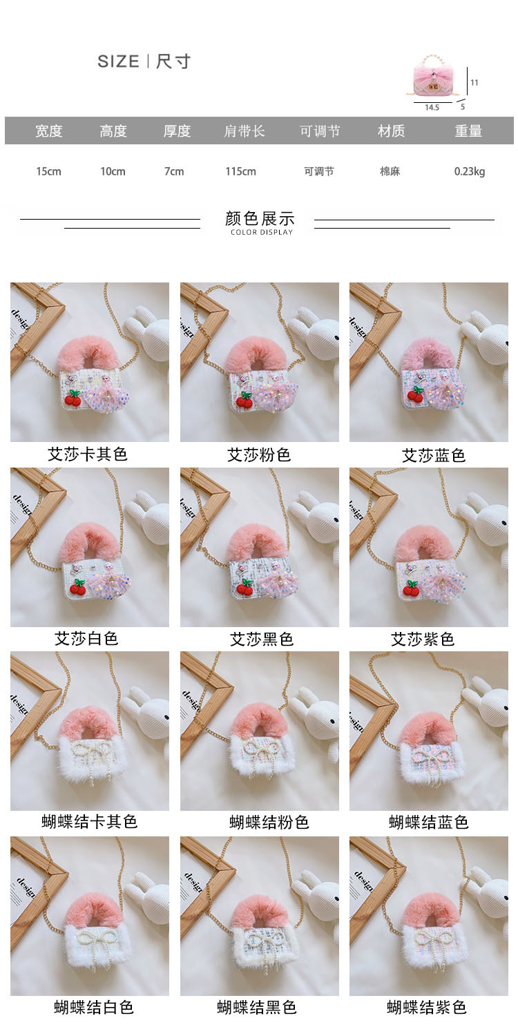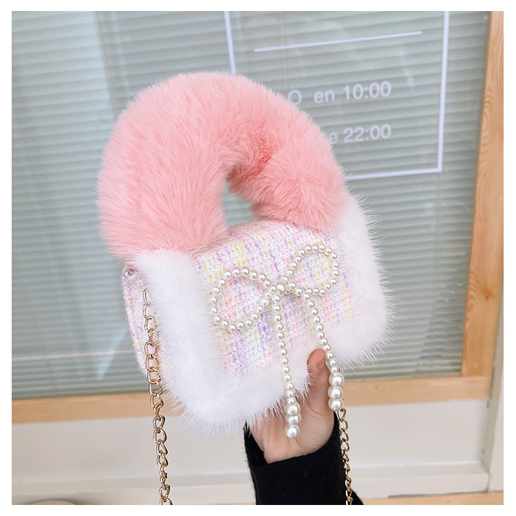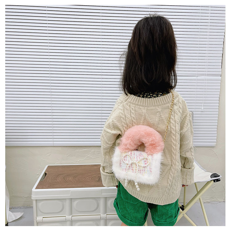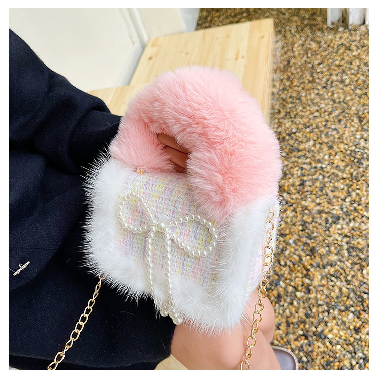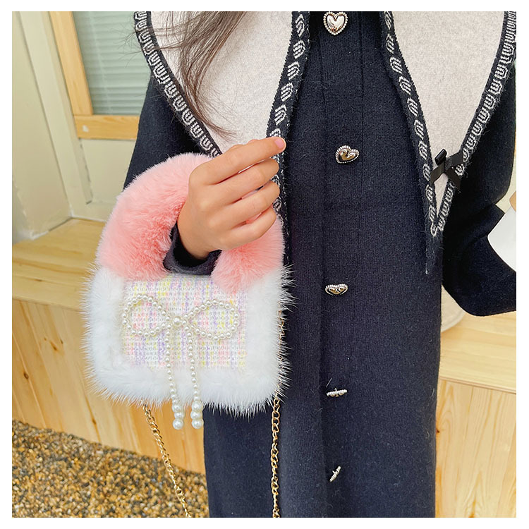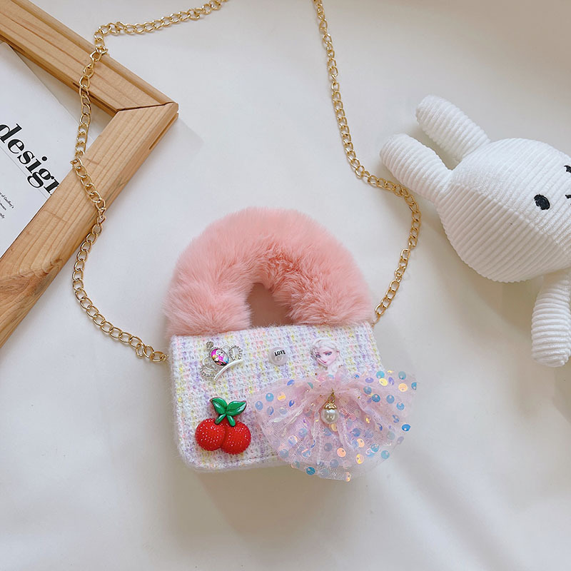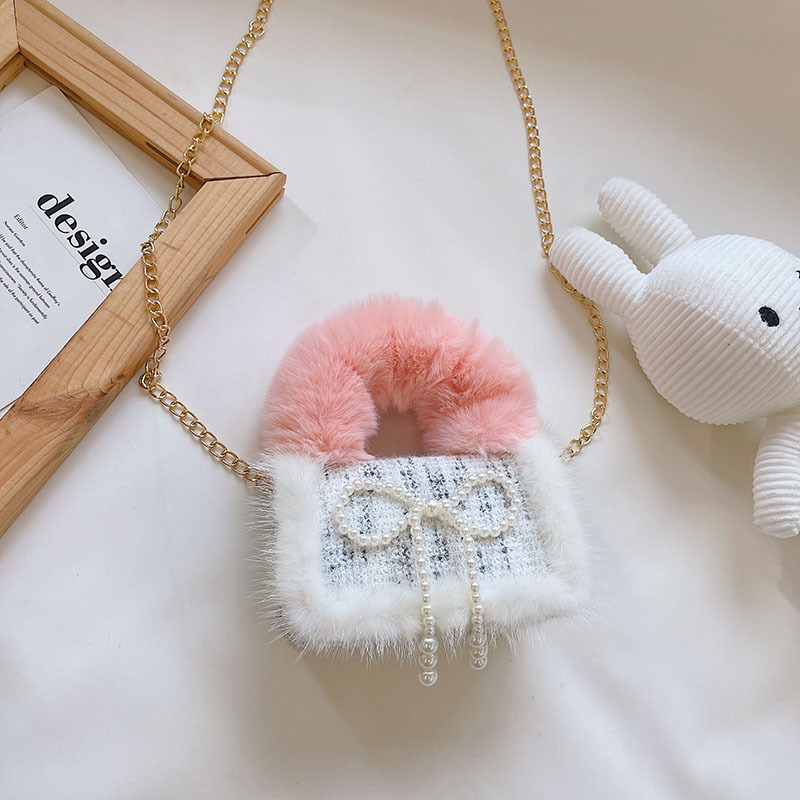 어린이 가방 2025 신상 숄더백 크로스백 플러시 소녀 동전 지갑 트렌디 리본 체인백