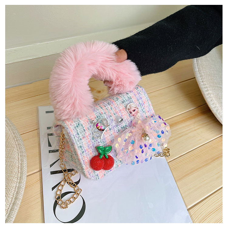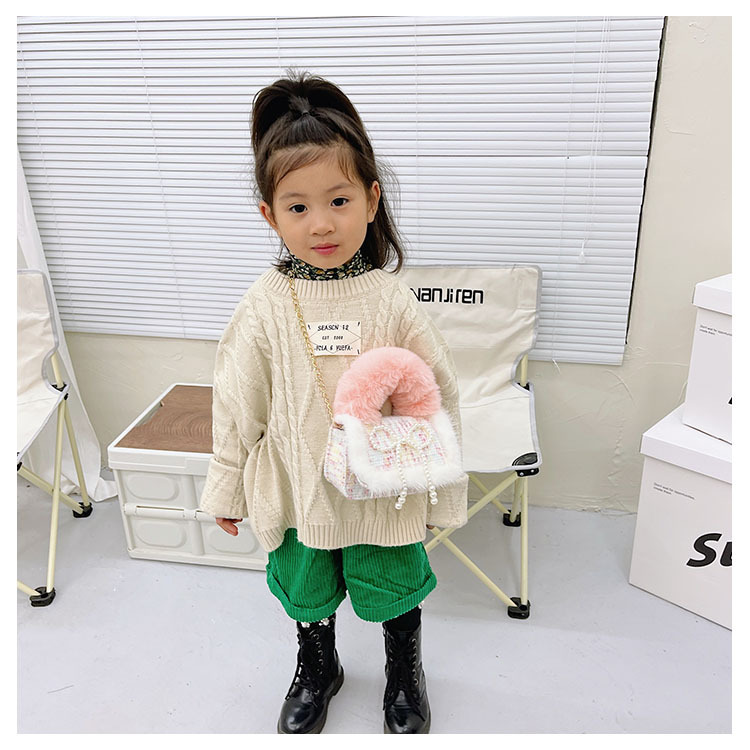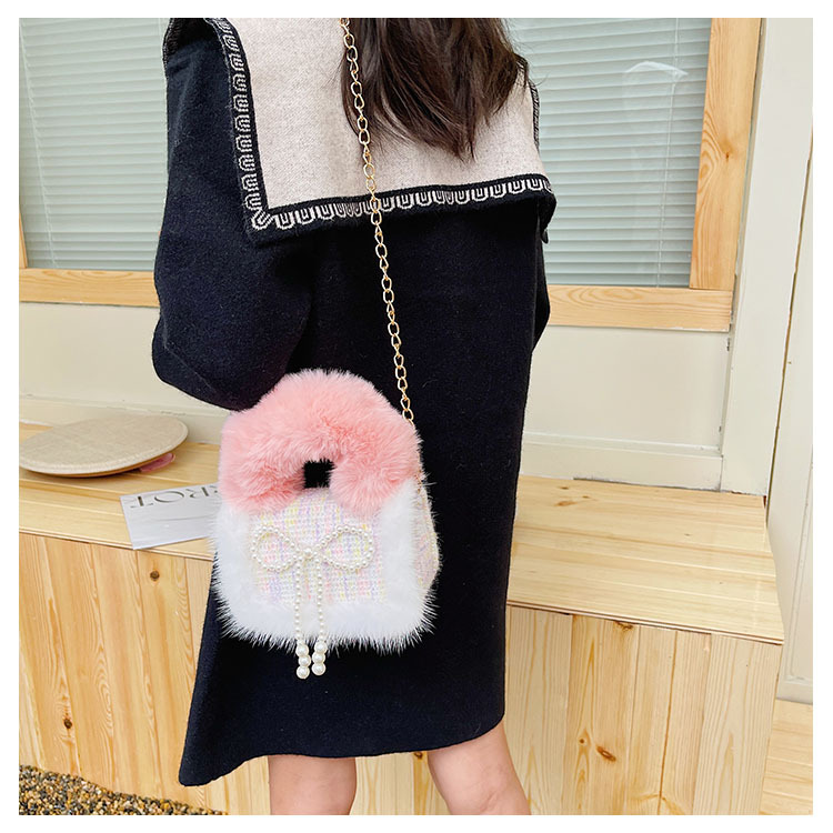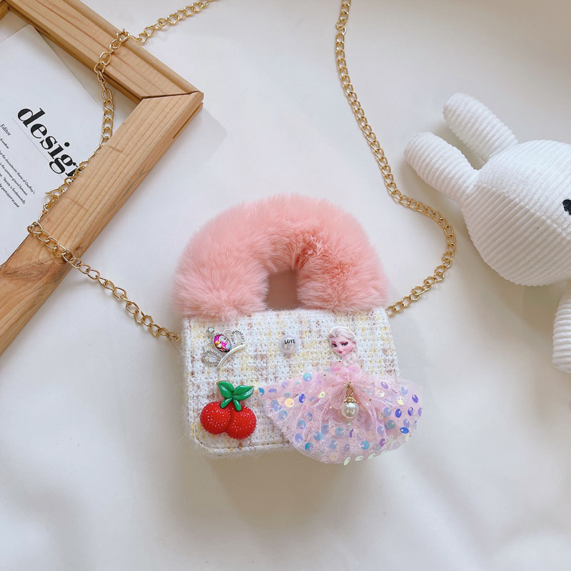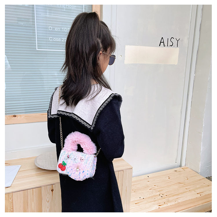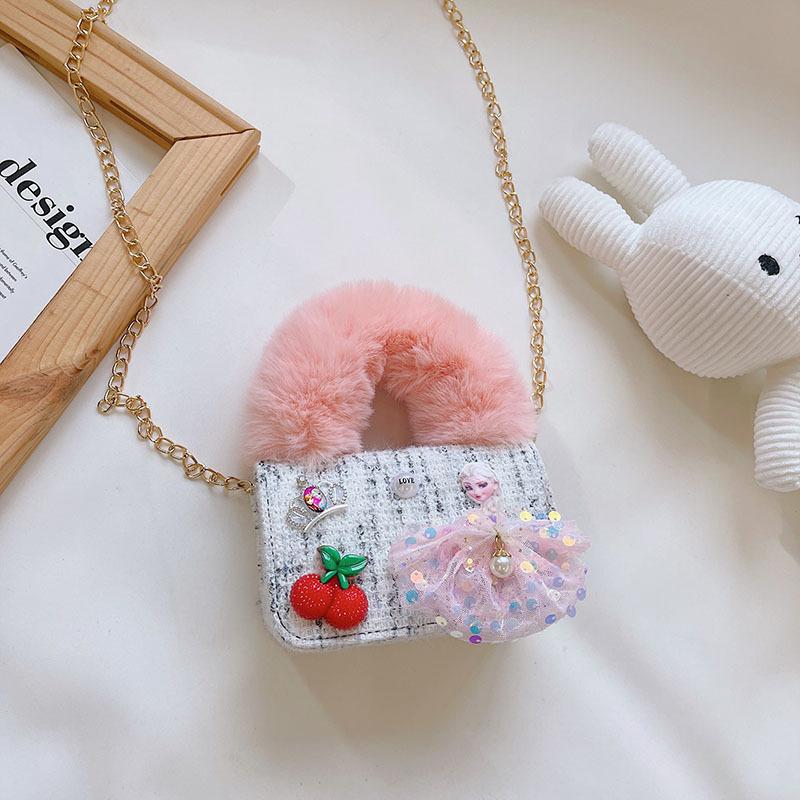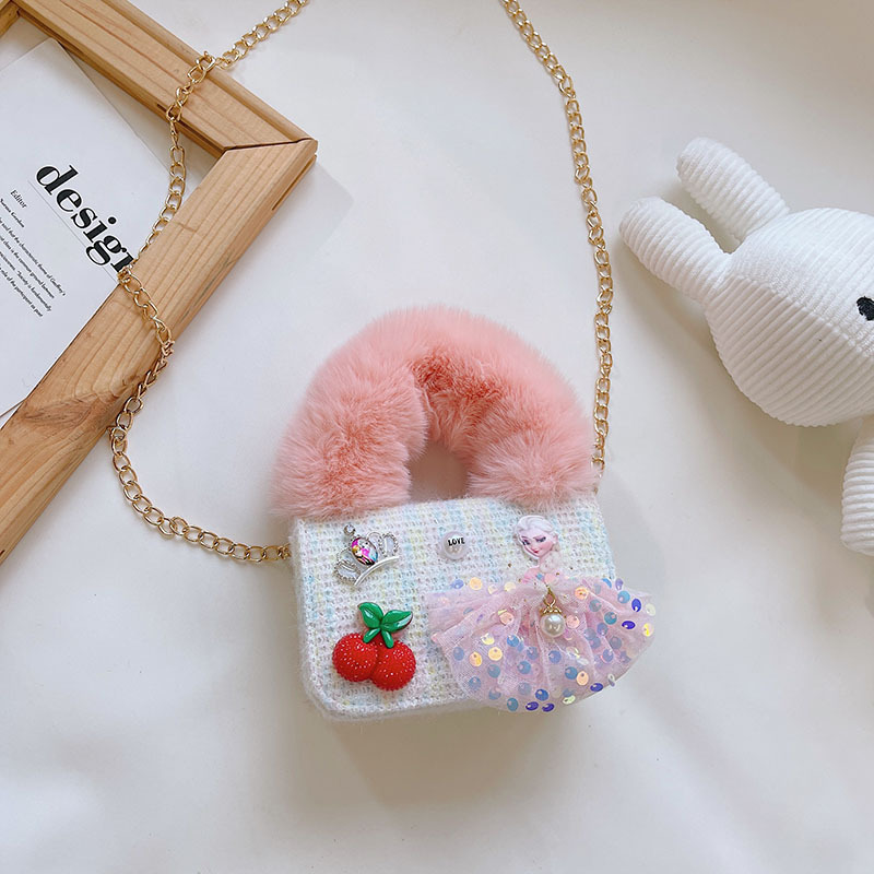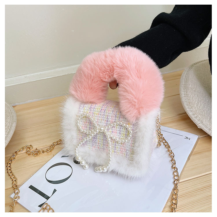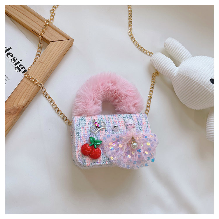 어린이 가방 2025 신상 숄더백 크로스백 플러시 소녀 동전 지갑 트렌디 리본 체인백