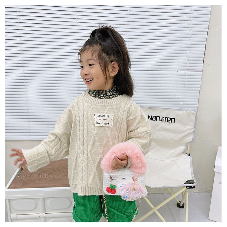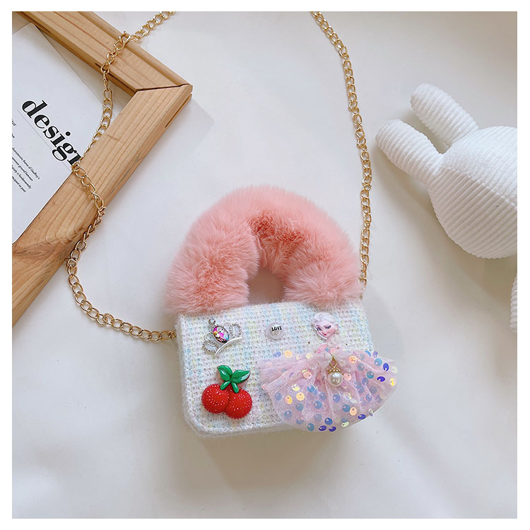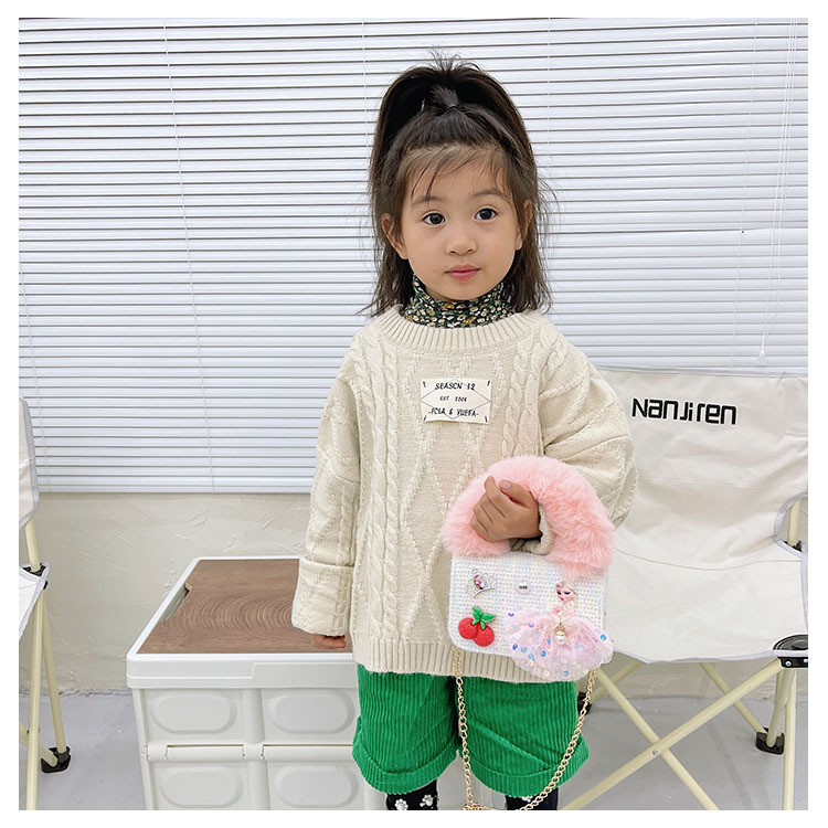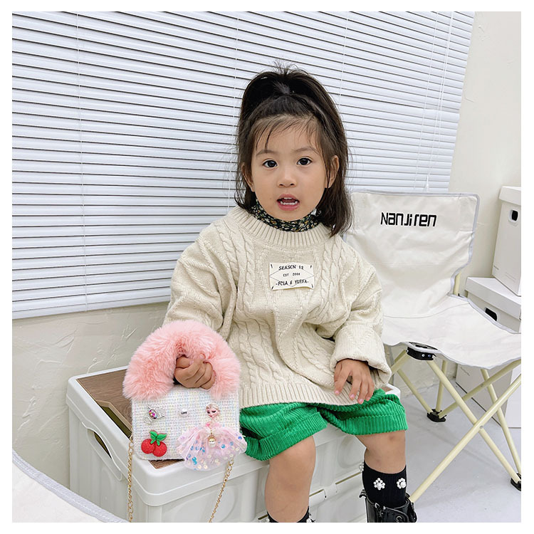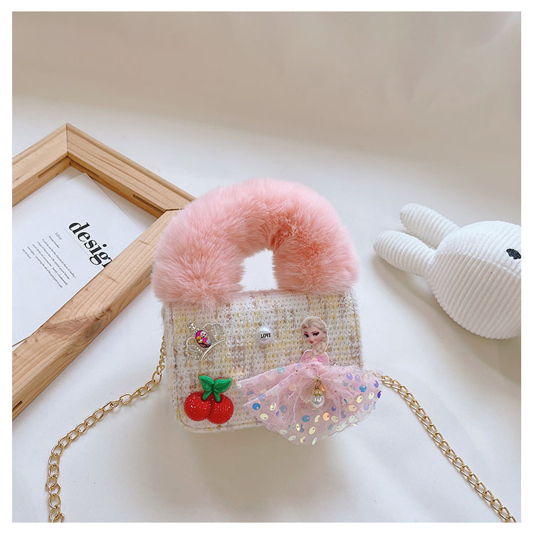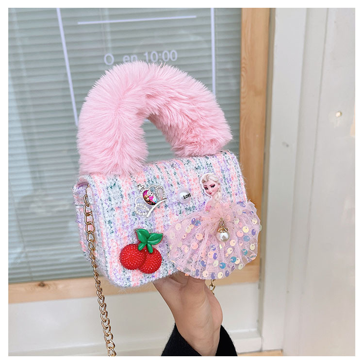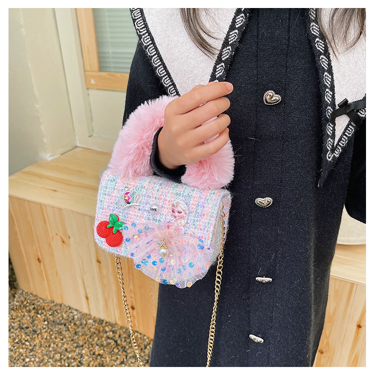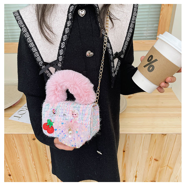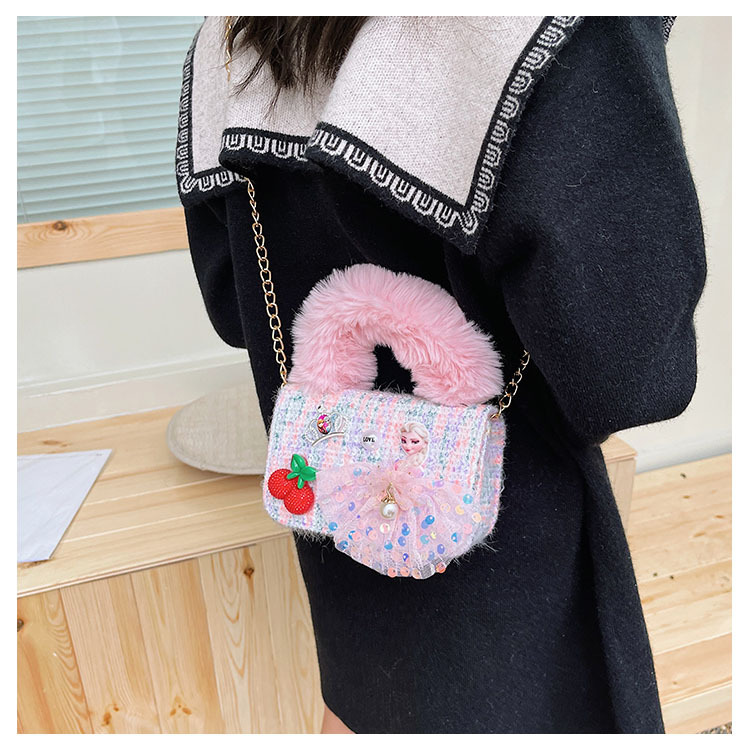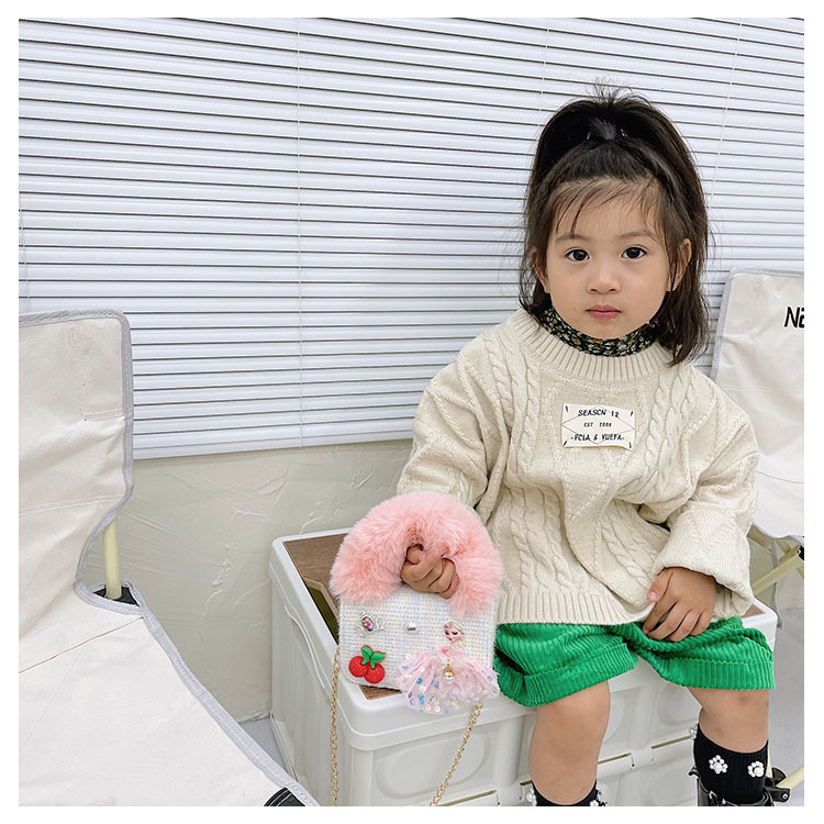 어린이 가방 2025 신상 숄더백 크로스백 플러시 소녀 동전 지갑 트렌디 리본 체인백