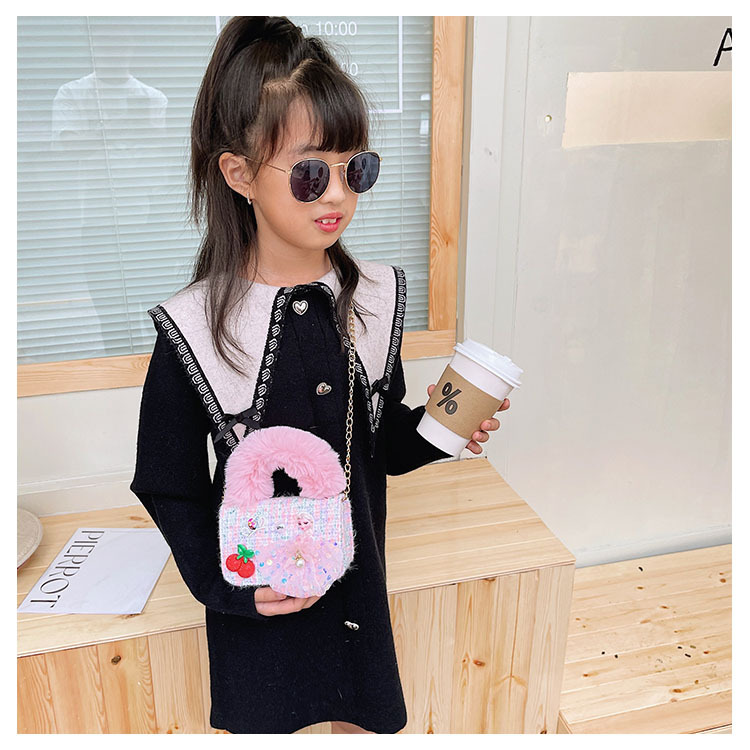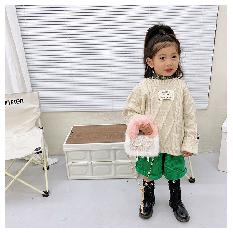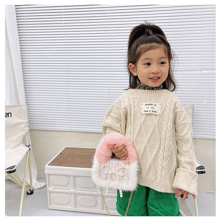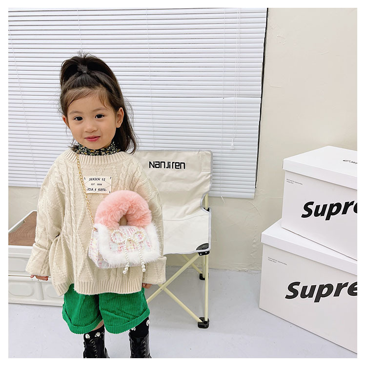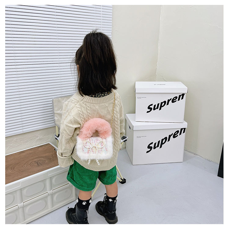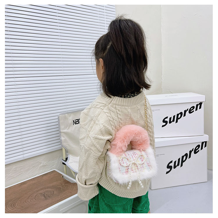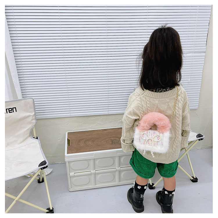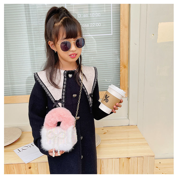 어린이 가방 2025 신상 숄더백 크로스백 플러시 소녀 동전 지갑 트렌디 리본 체인백스토어 가기