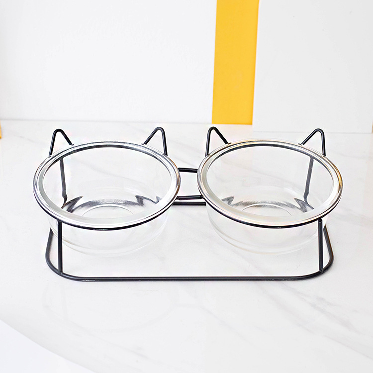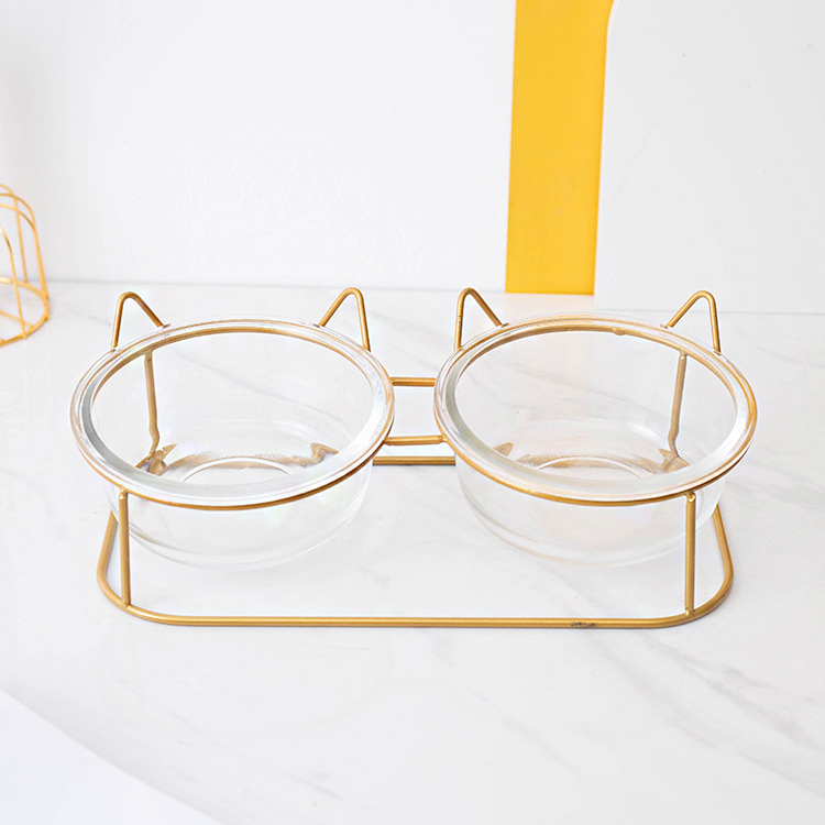 공장 도매 고양이 그릇 유리 높이 조절 가능 고양이 및 강아지 식기 경사형 목 보호 안정적인 고양이 사료 그릇 세척 용이스토어 가기