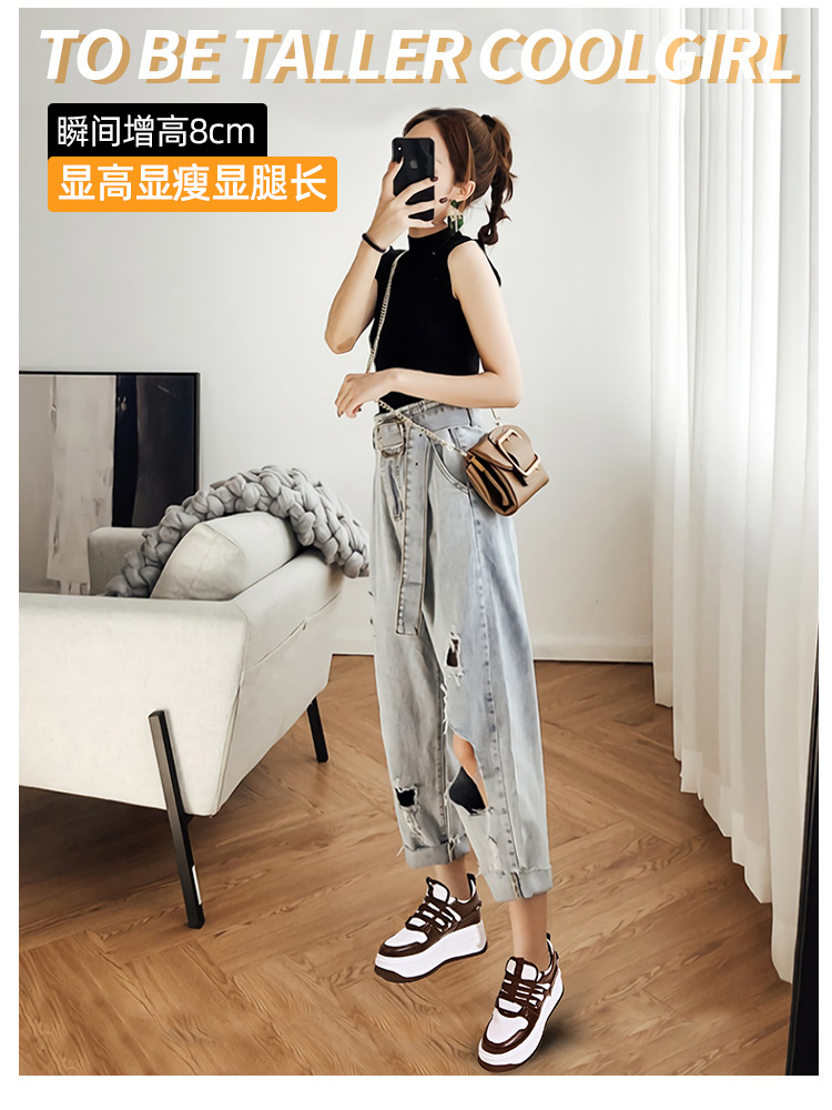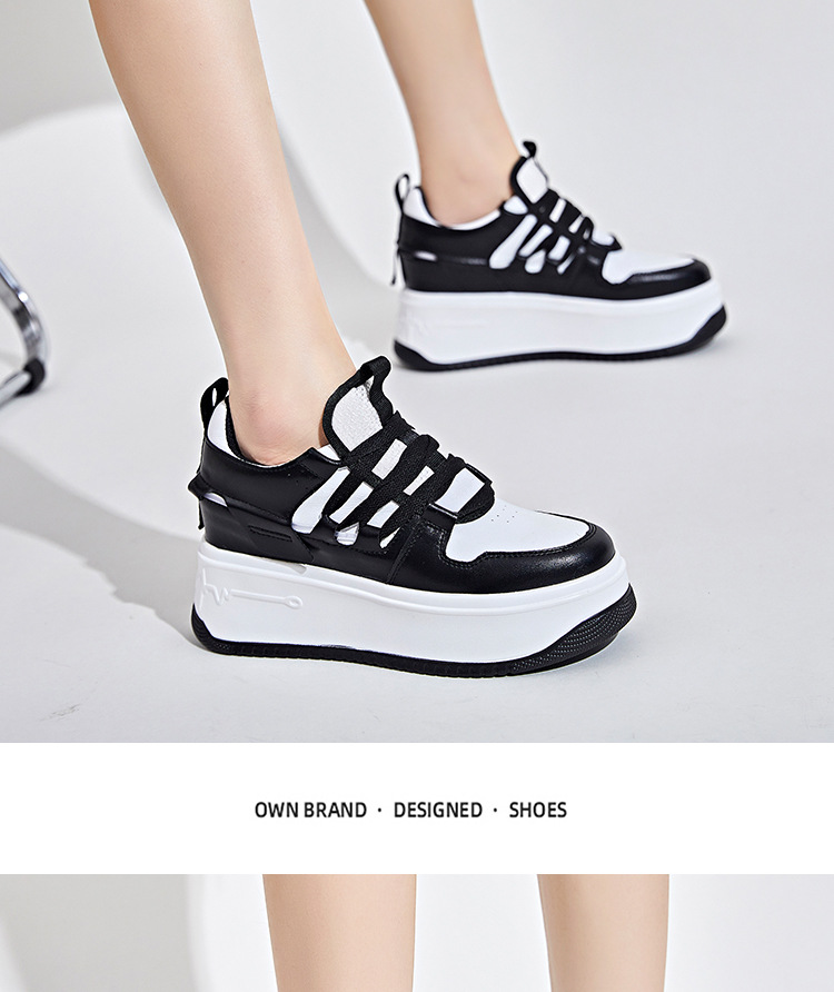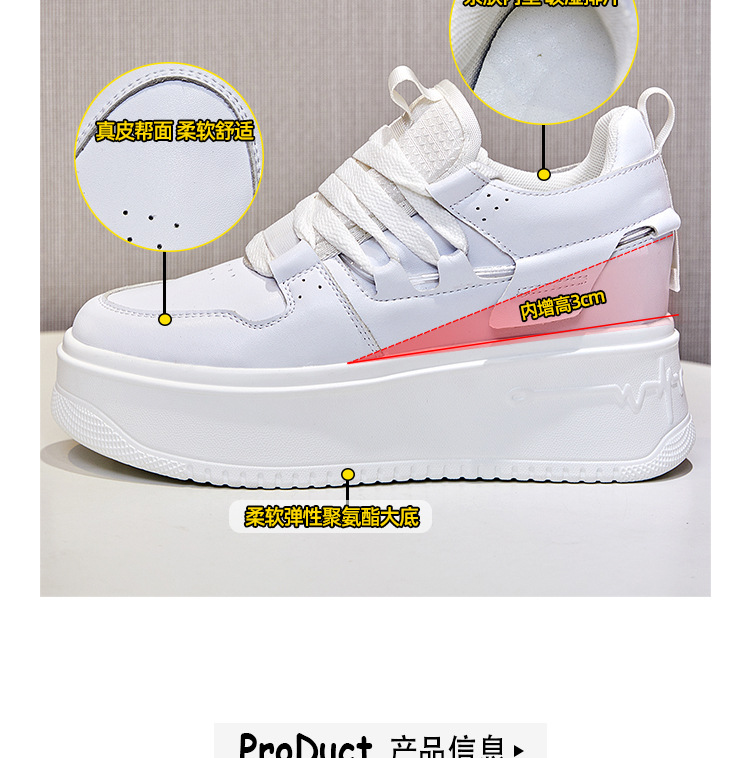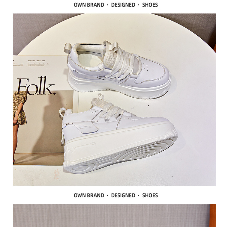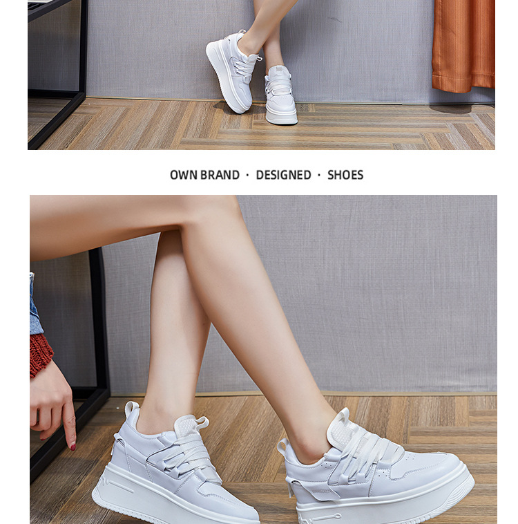 새로운 스타일의 흰색 가죽 여성 신발, 여성용 키높이 캐주얼 플랫폼 플랫 슈즈, 여성용 웨지힐 2025 정품 가죽 신발스토어 가기