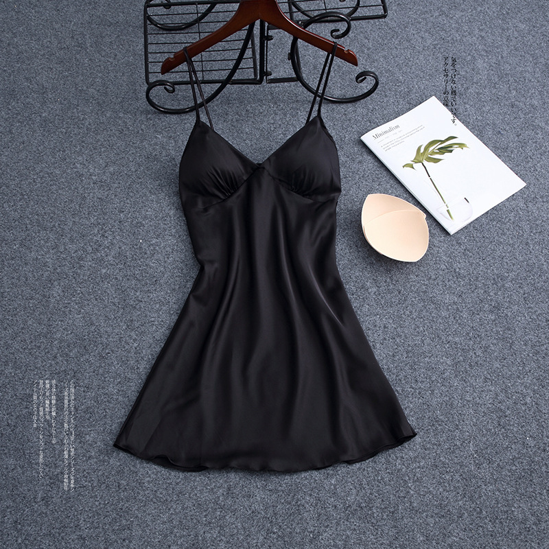 잠옷 여성 여름 얼음 실크 단색 슬링 얇은 잠옷 가슴 패드 도매 새틴 쉬폰 가정 의류