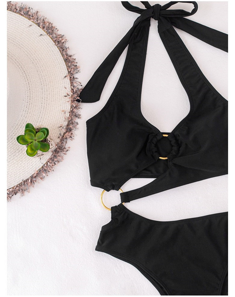 2021 년 뉴 패션 섹시 트라이앵글 원피스 새는 백 스트랩 온천 홀리데이 수영복 [헤어 세대]]