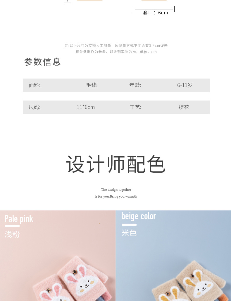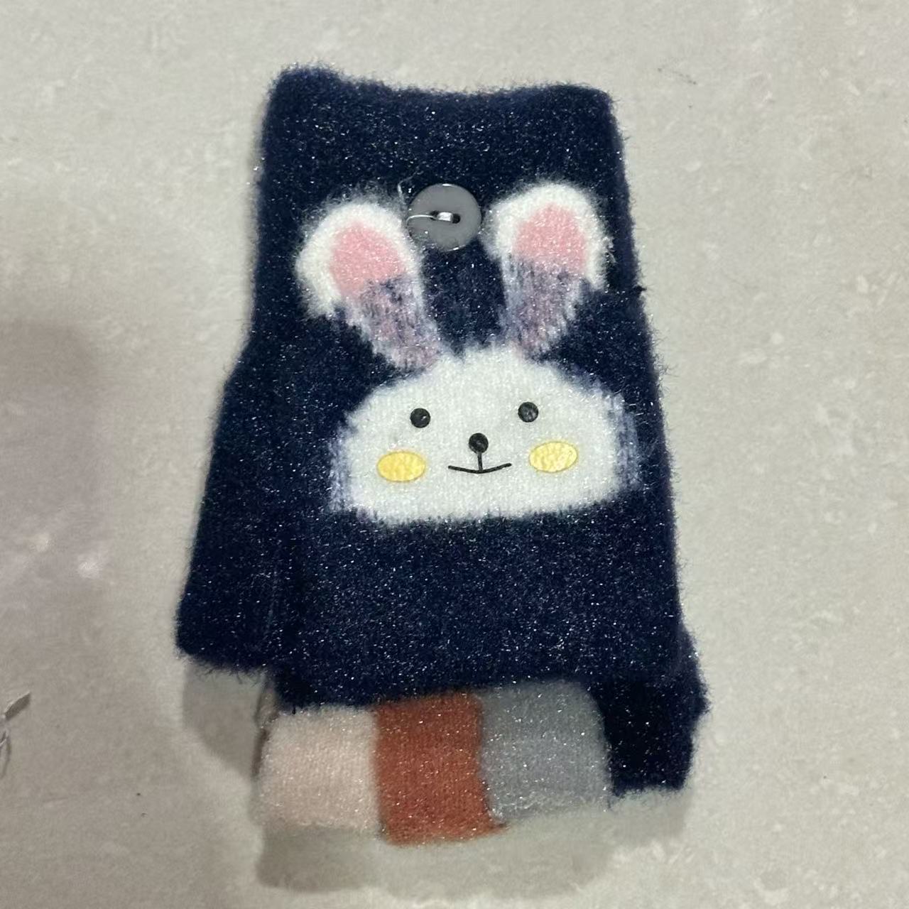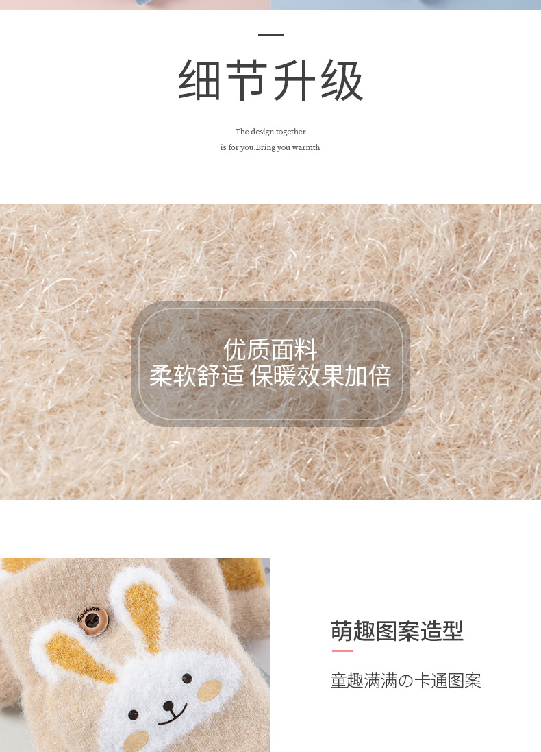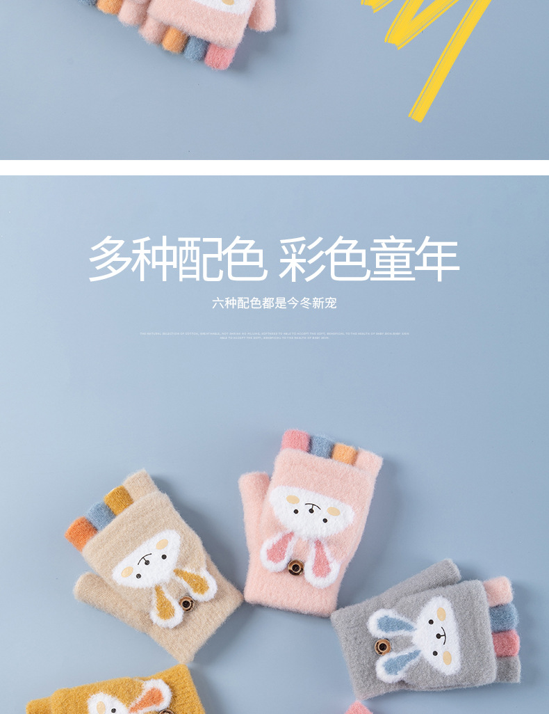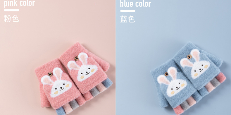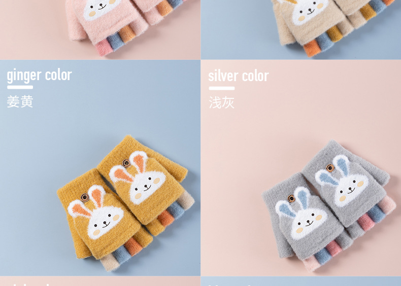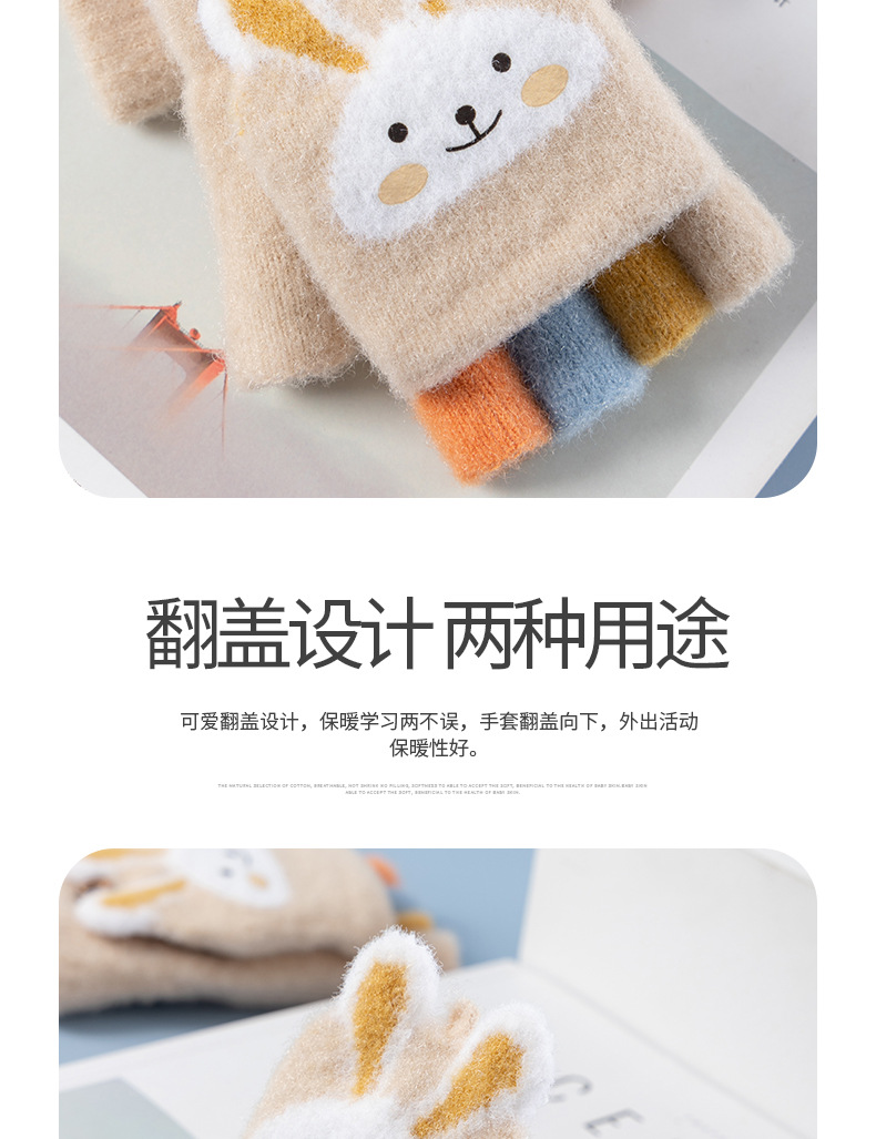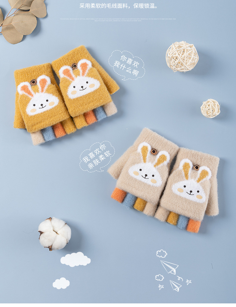 새로운 어린이 자카드 토끼 인쇄 반 손가락 장갑 겨울 따뜻한 플러스 벨벳 두꺼운 만화 반 손가락 플립 업 장갑스토어 가기