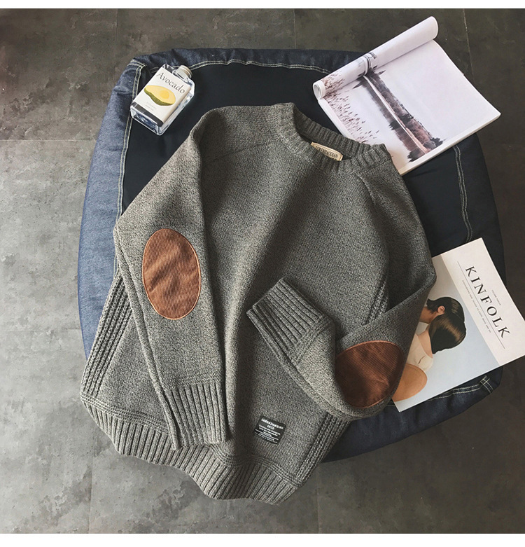 패치 니트 스웨터 남성 학생 플러스 사이즈 유행 브랜드 뚱뚱한 남자 느슨한 두꺼운 바닥 가을과 겨울 일본 스타일 복고풍 스타일