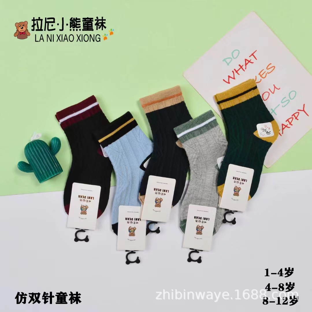 • 라니 베어 더블 바늘 양말 다양한 패턴 무작위 배송 소년 1-4 세