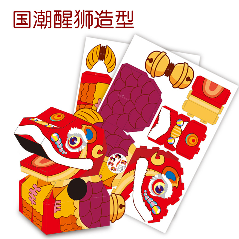 같은 어린이 사자 댄스 웨어러블 카톤 웨어러블 카톤 DIY 조립 유치원 공연 소리를 흔들어스토어 가기