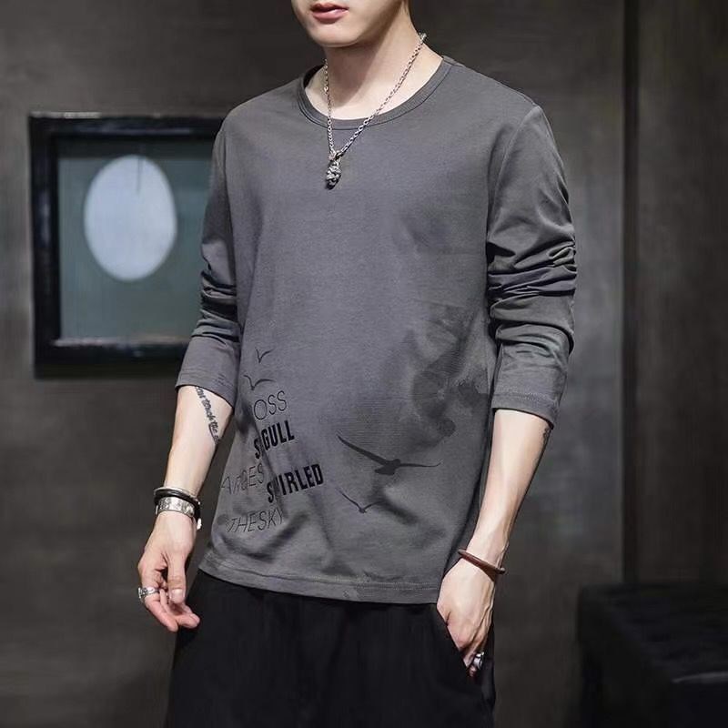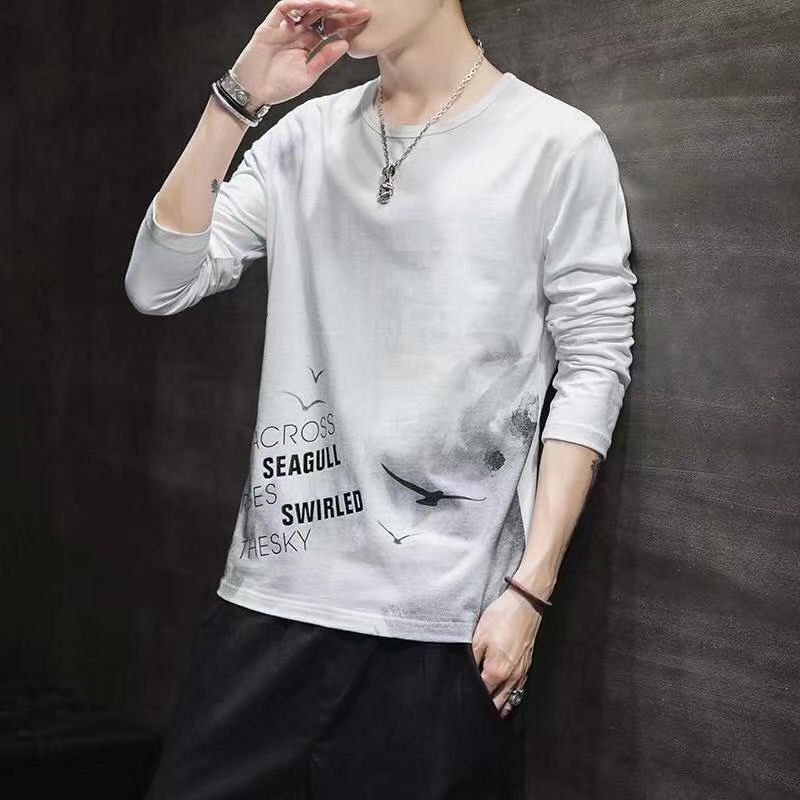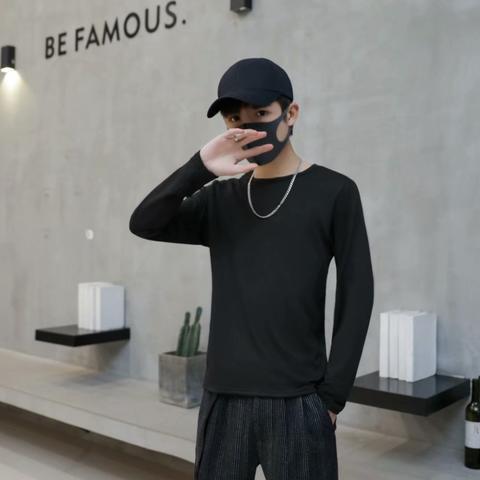 가을 2024 년 새 남성 긴팔 티셔츠베이스 셔츠 한국 유행 올매치 느슨한 가을 옷스토어 가기