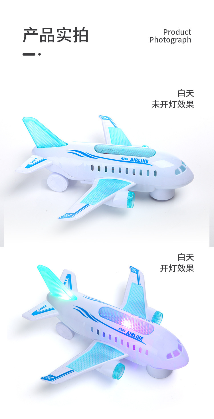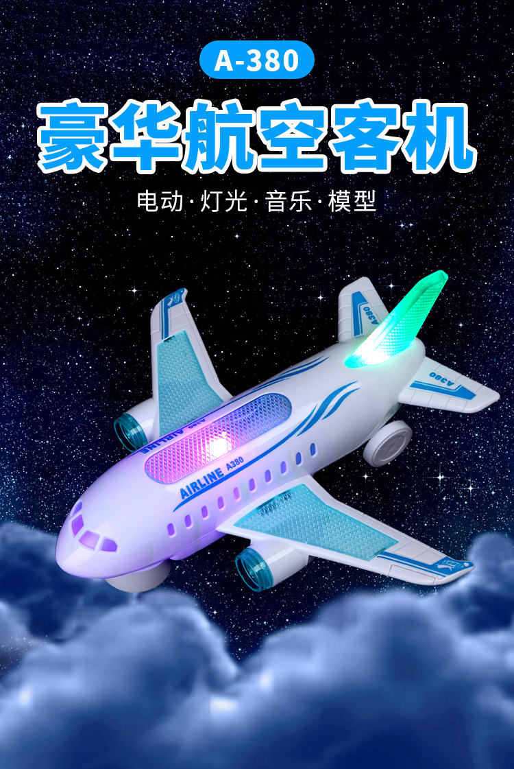 새로운 전기 항공기 Airbus A380 여객기 음향 광학 어린이 항공기 공장 도매 등록 스톨 장난감