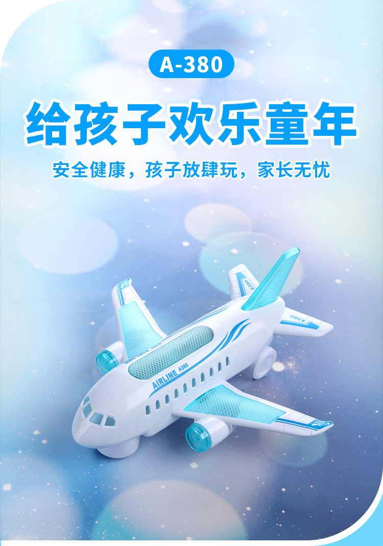 새로운 전기 항공기 Airbus A380 여객기 음향 광학 어린이 항공기 공장 도매 등록 스톨 장난감스토어 가기
