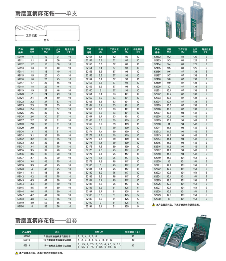 • 내마모성 직선 핸들 트위스트 드릴 5개 세트-9.3mm 52193