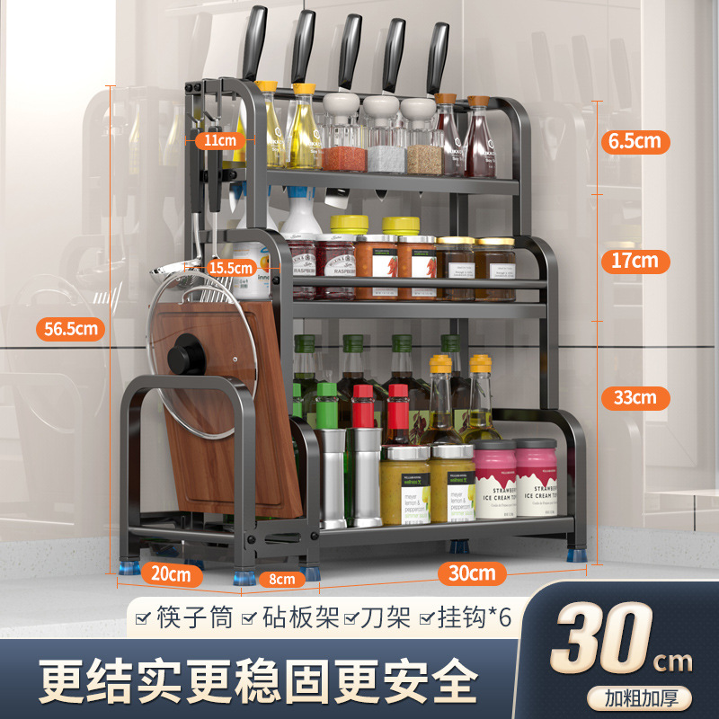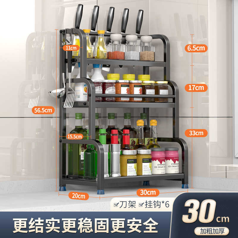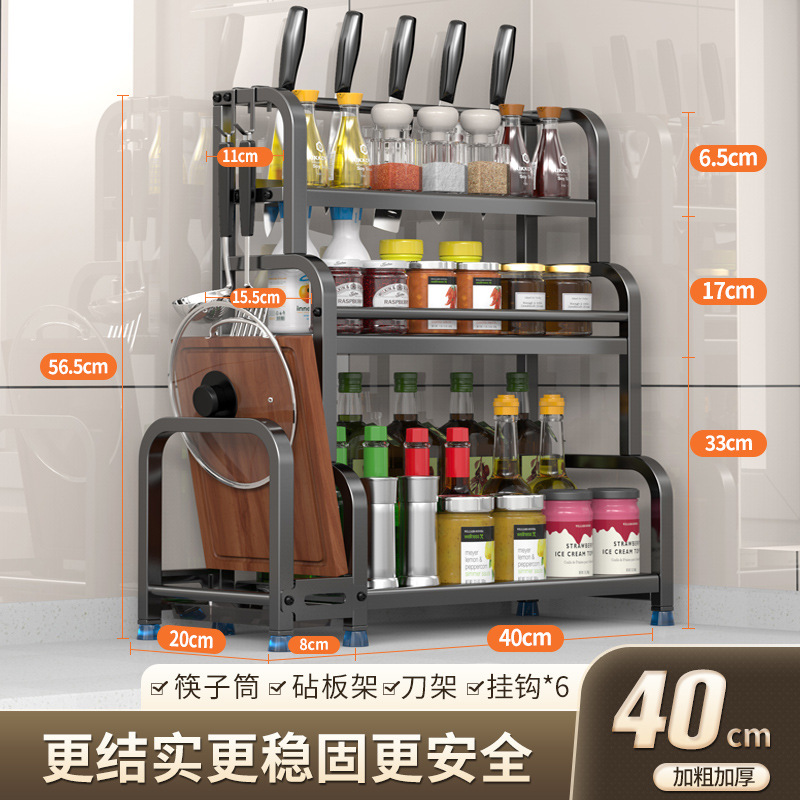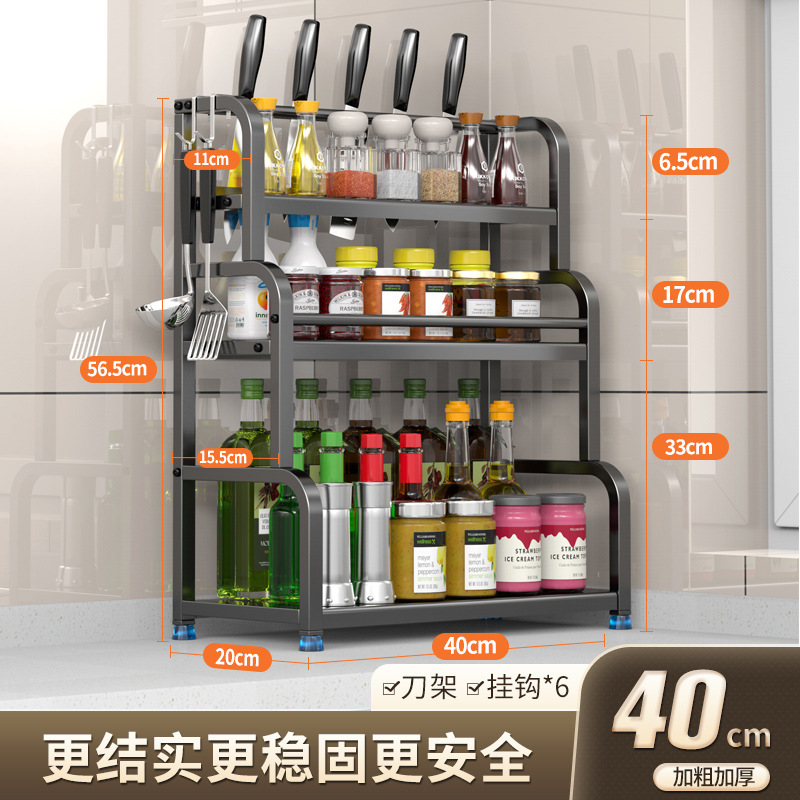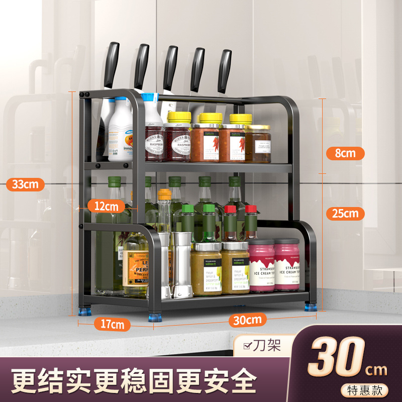 국경 간 주방 수납 선반 칼 홀더 젓가락 조미료 용품 수납 선반 조리대 다층 검정 양념 선반 홈스토어 가기