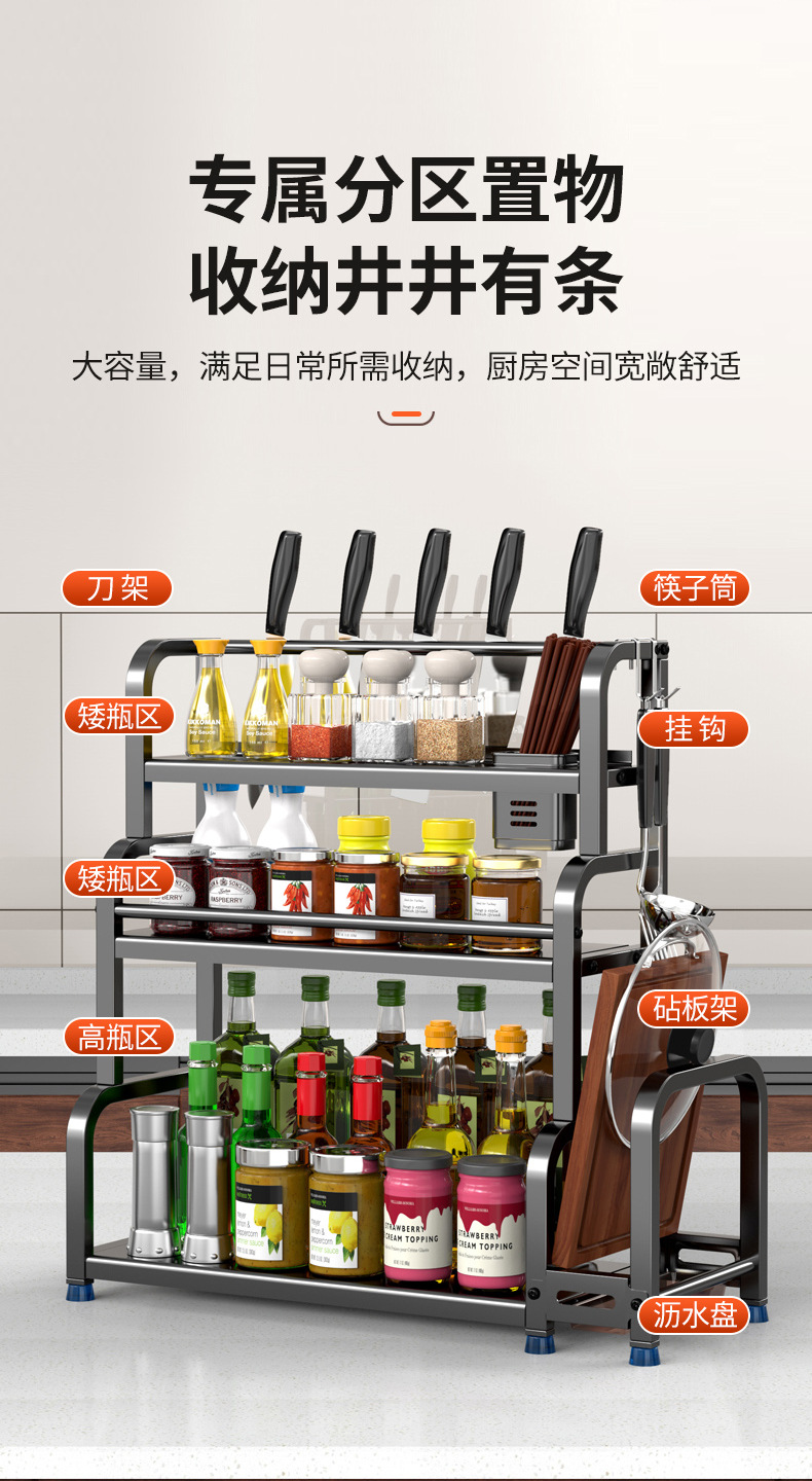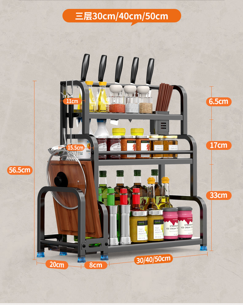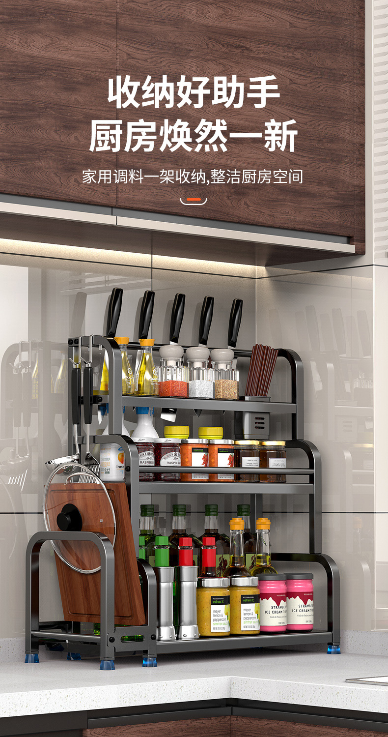 국경 간 주방 수납 선반 칼 홀더 젓가락 조미료 용품 수납 선반 조리대 다층 검정 양념 선반 홈스토어 가기