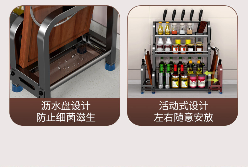 국경 간 주방 수납 선반 칼 홀더 젓가락 조미료 용품 수납 선반 조리대 다층 검정 양념 선반 홈
