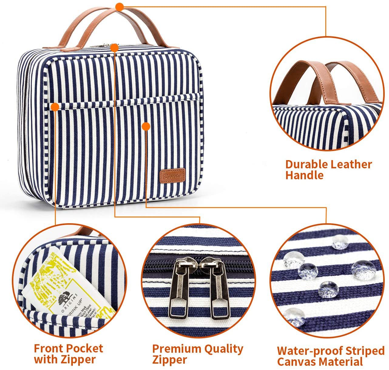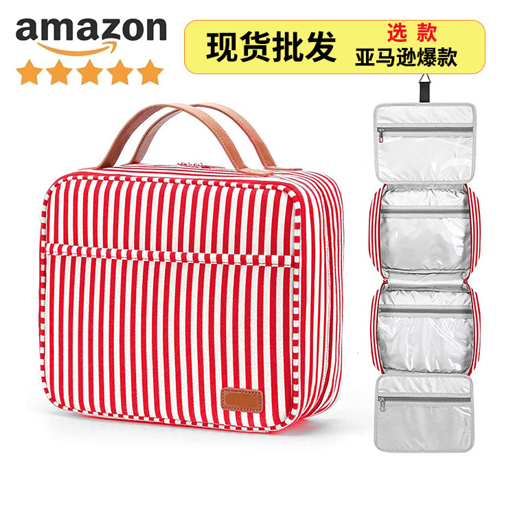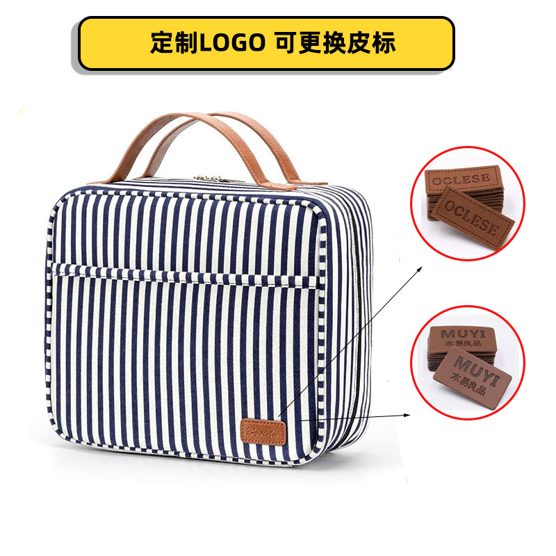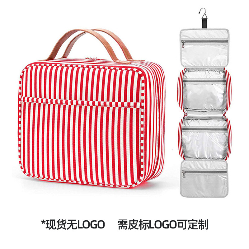 스트라이프 캔버스 여행 워시 백 방수 캔버스 워시 백 건조 및 습식 분리 대용량 캔버스 여행 화장품 가방