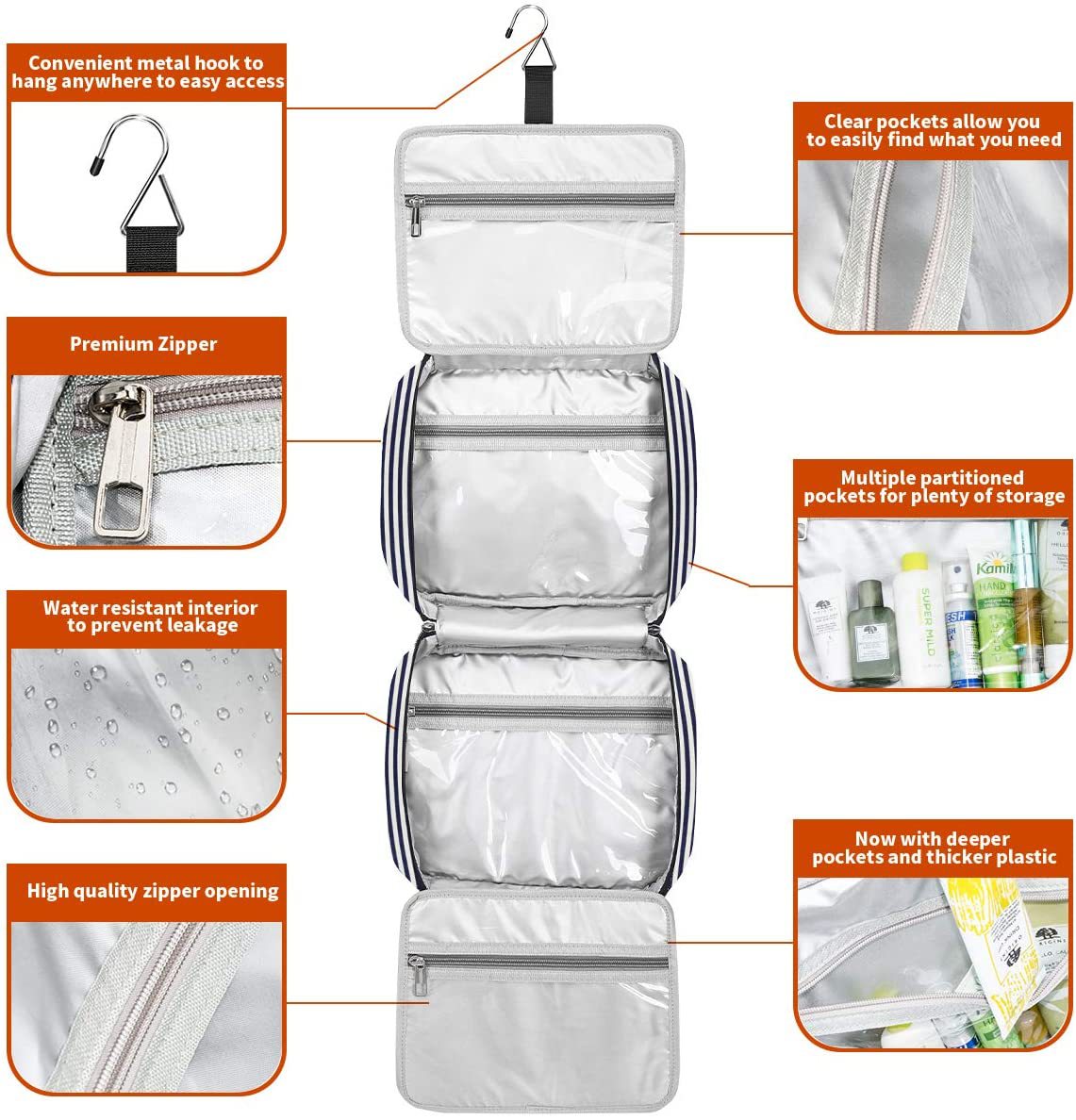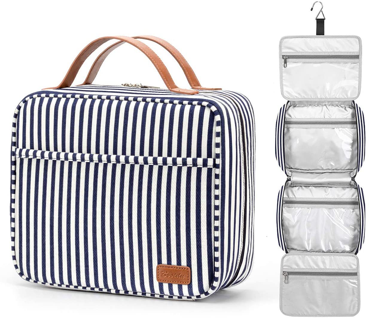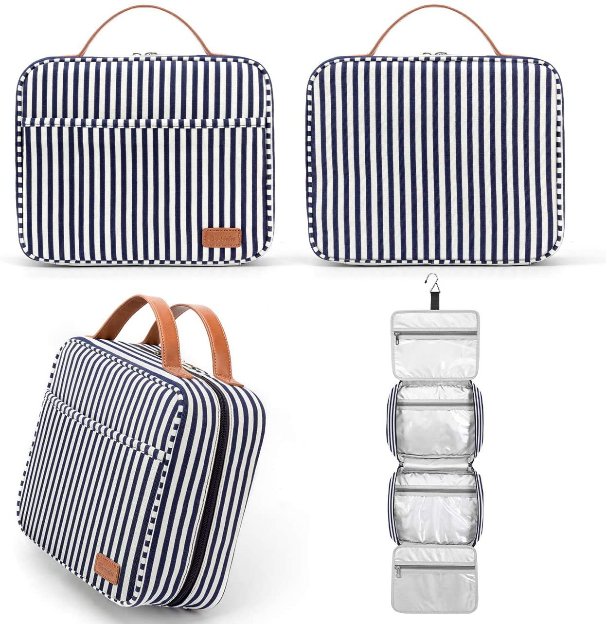 스트라이프 캔버스 여행 워시 백 방수 캔버스 워시 백 건조 및 습식 분리 대용량 캔버스 여행 화장품 가방