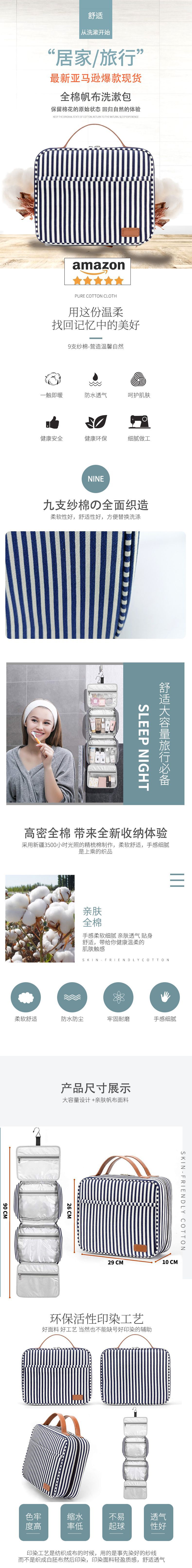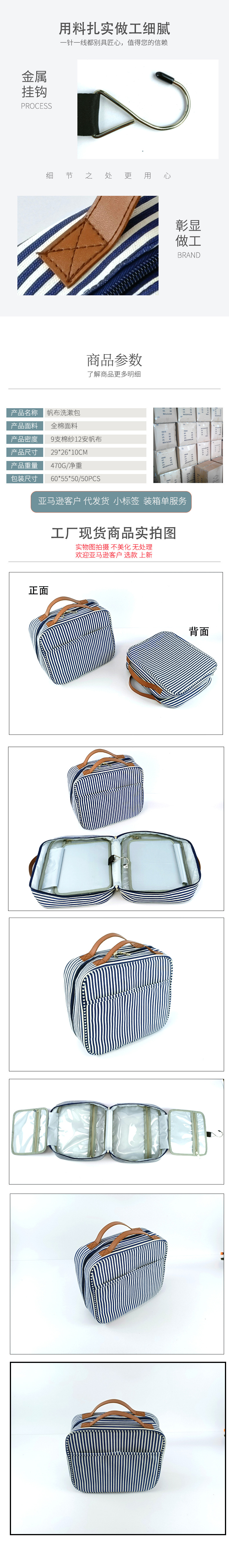 스트라이프 캔버스 여행 워시 백 방수 캔버스 워시 백 건조 및 습식 분리 대용량 캔버스 여행 화장품 가방스토어 가기