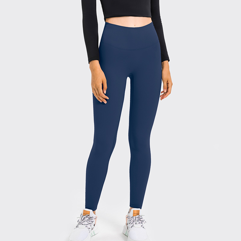 Lulu 유럽과 미국의 높은 허리 엉덩이 리프팅 당황없는 라인 알몸 요가 바지 여성용 알몸 빠른 건조 꽉 달리기 복숭아스토어 가기