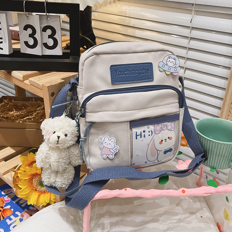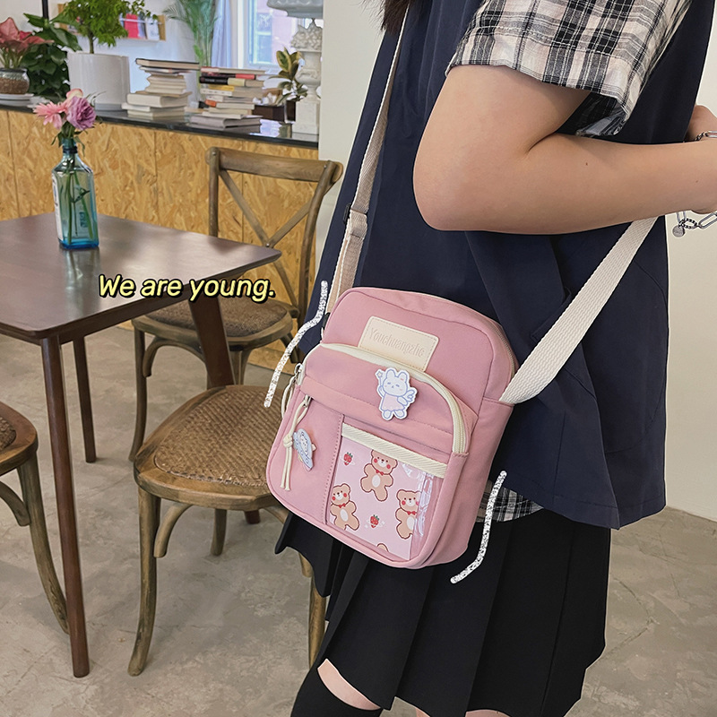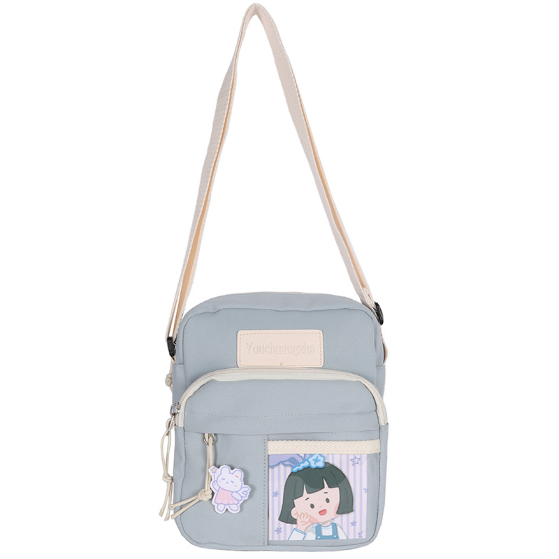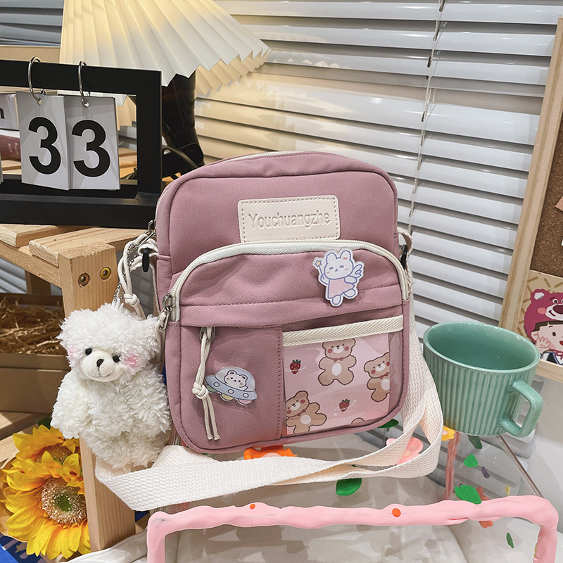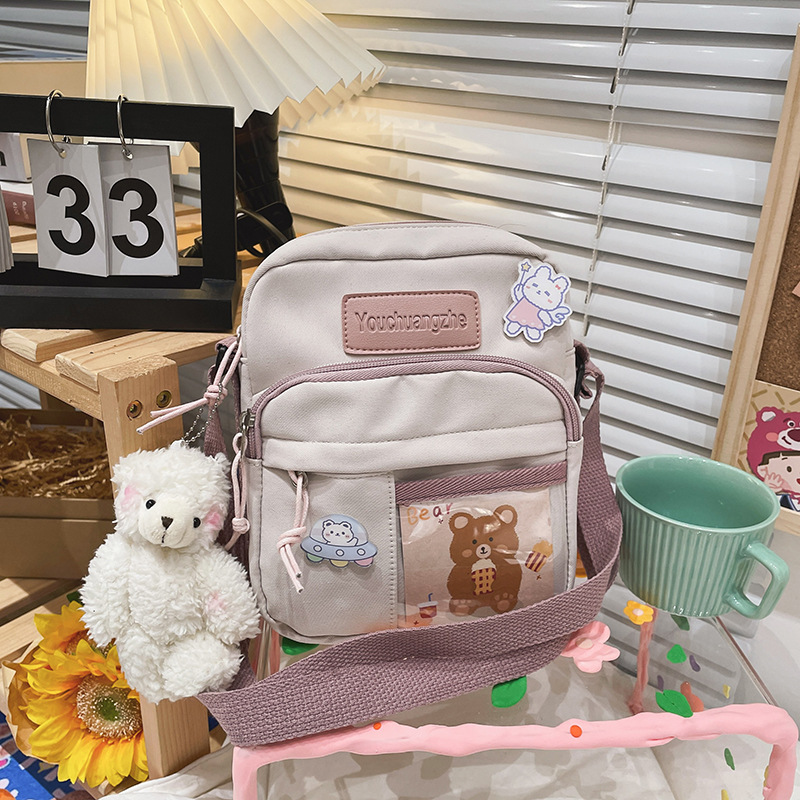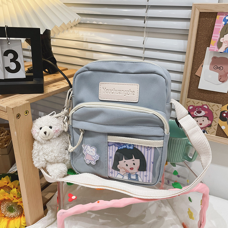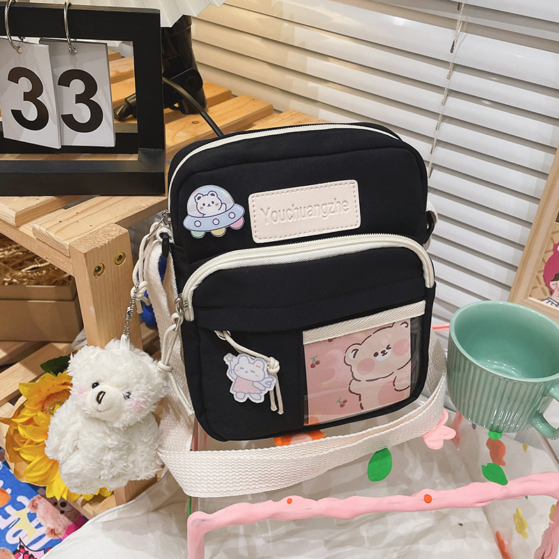 가방 여자의 일본식 신선한 부드러운 소녀 학생 숄더 백 여자의 만화 귀여운 나일론 발수성 투명 크로스 바디 백스토어 가기