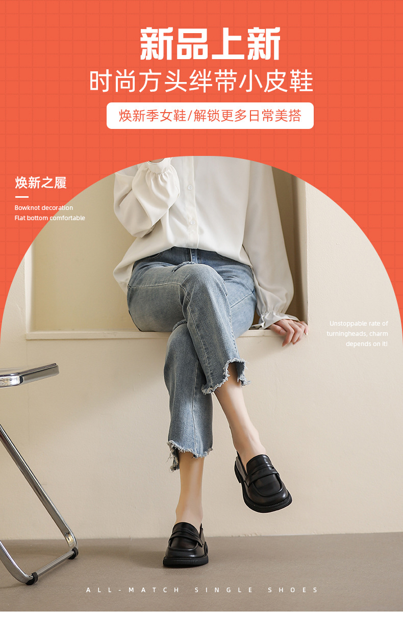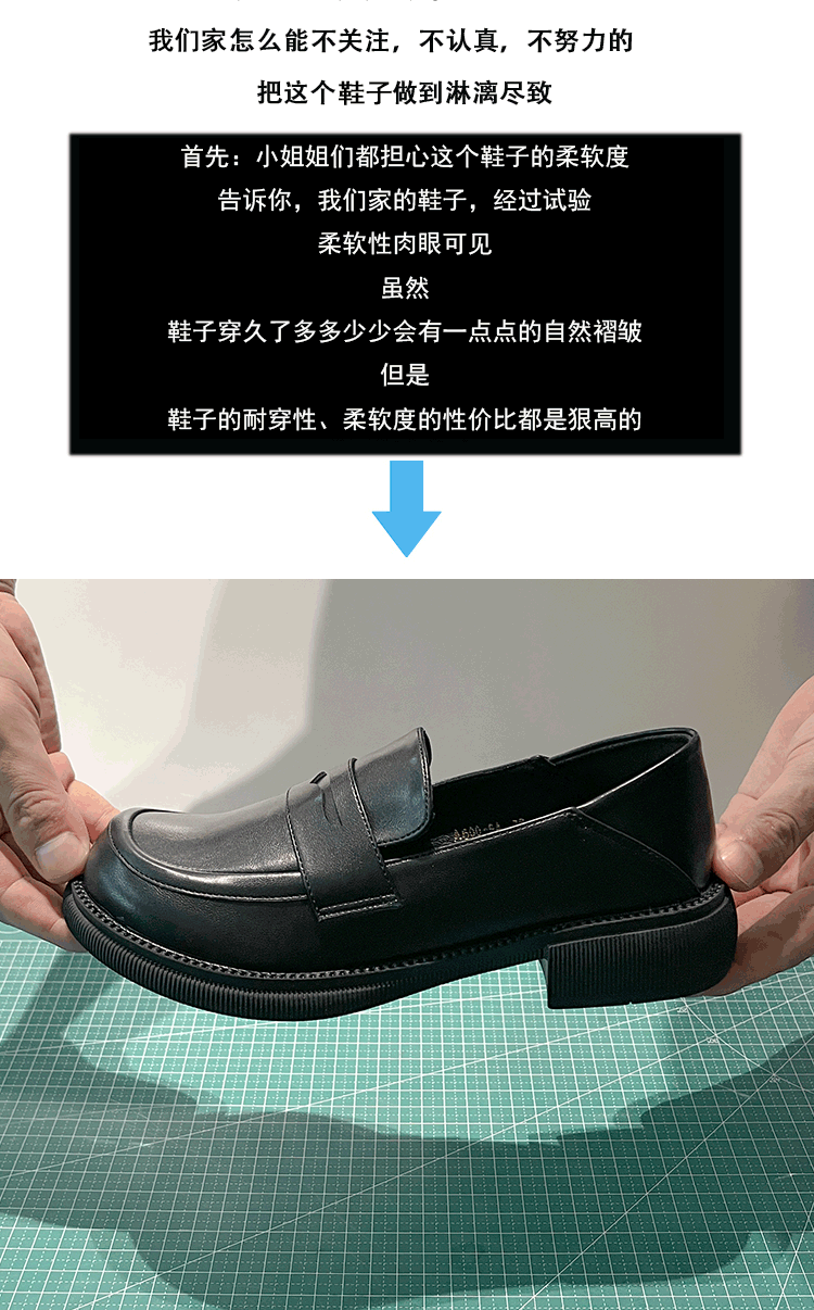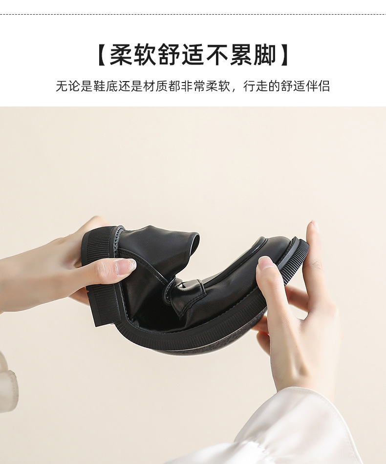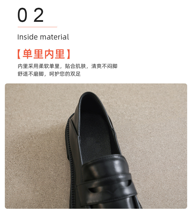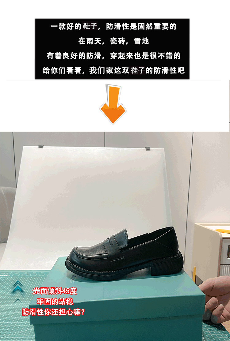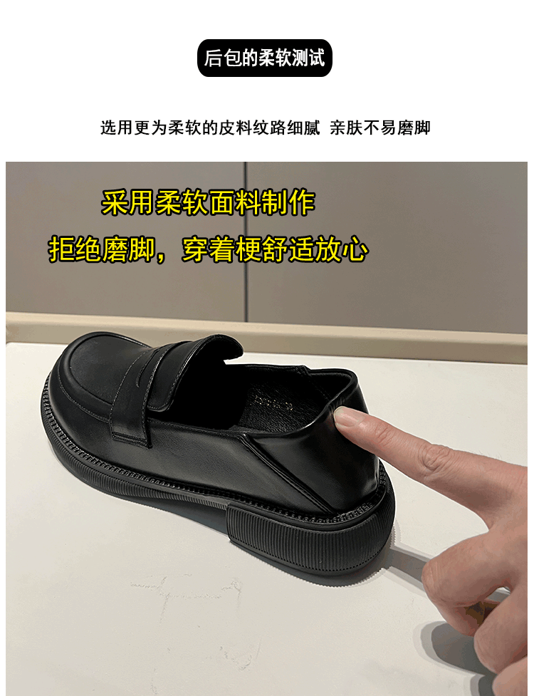블랙 영국 작은 가죽 신발 여성 두꺼운 밑창 봄 2022 새로운 슬립 온 두꺼운 뒤꿈치 로퍼 라운드 발가락 2 착용 여성 신발스토어 가기