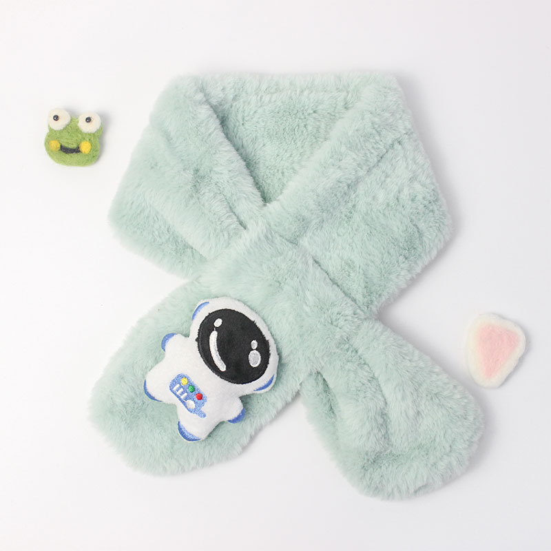2023 가을과 겨울 새로운 어린이 봉제 스카프 우주 비행사 모조 토끼 모피 아기 스카프 두꺼운 따뜻한 십자가 스카프