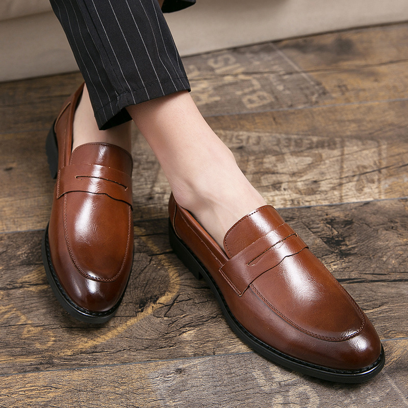 夏季复古流苏男鞋休闲潮鞋套脚尖头小皮鞋布洛克款式男鞋英伦青年