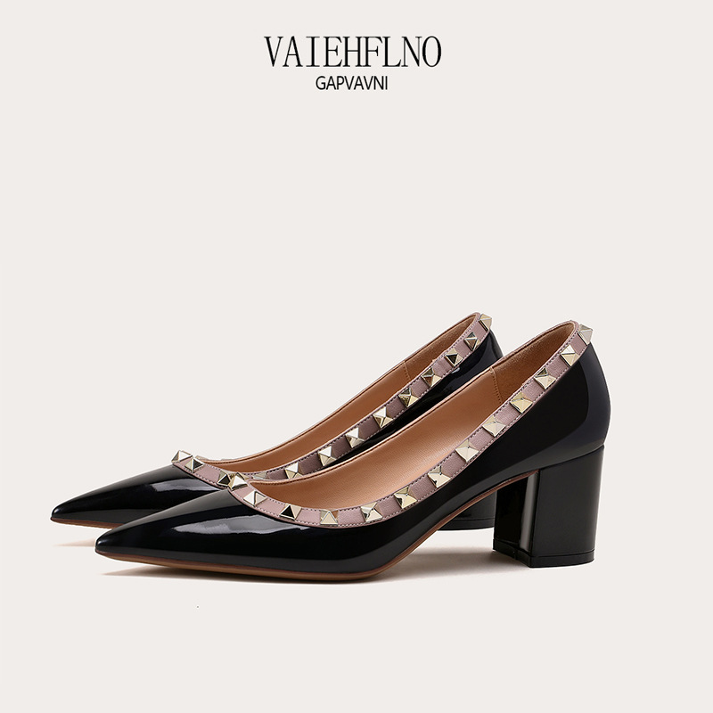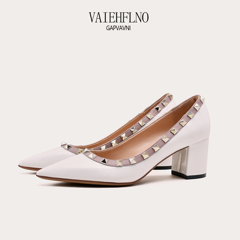 하이힐 여성용 빈티지 리벳 싱글 슈즈 2021 봄과 가을 새로운 여성 신발 스퀘어 토 얕은 입 가죽 신발 얕은 입 청키 힐 신발스토어 가기