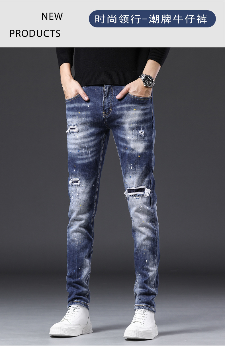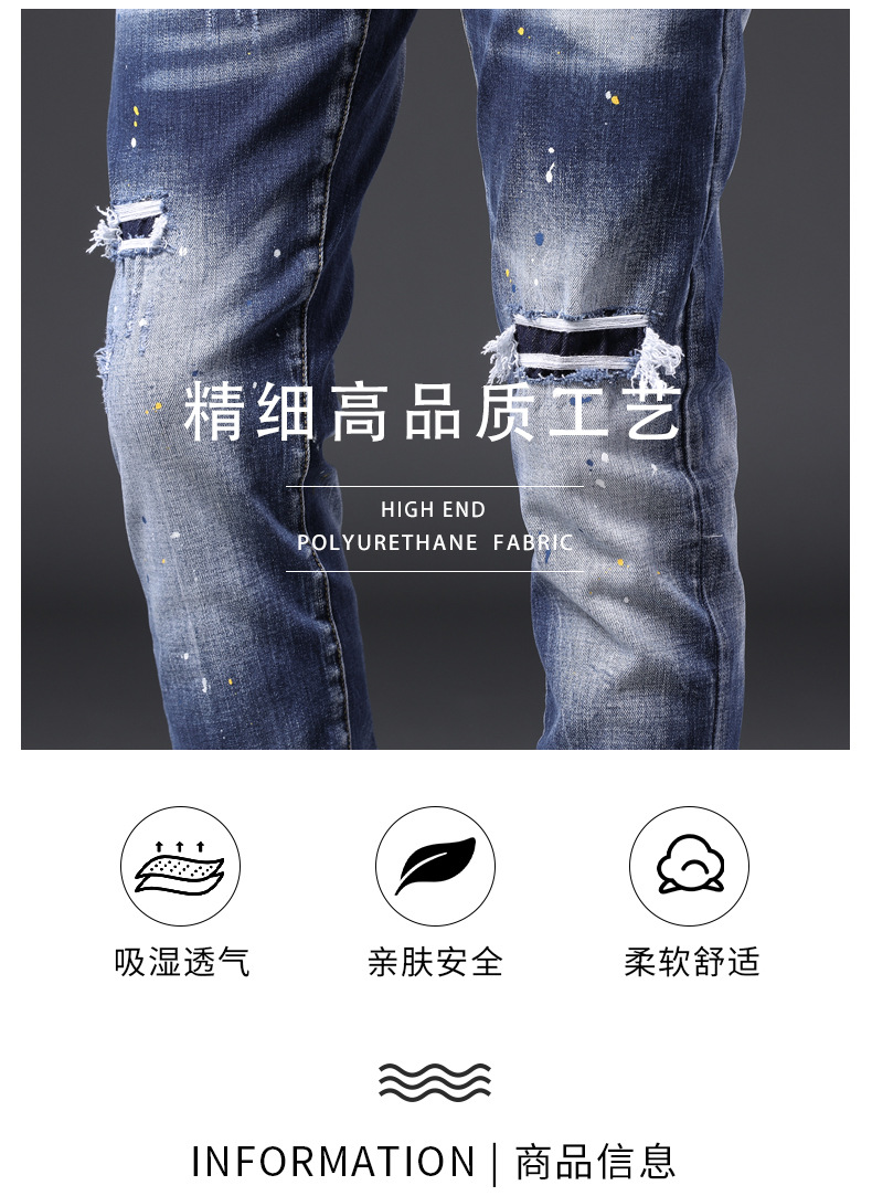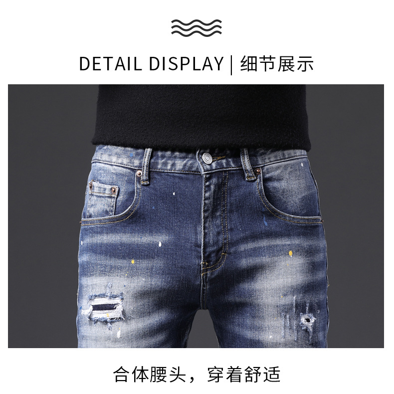 2022 새로운 유럽과 미국 패션 브랜드 젖빛 구멍 색상 그라디언트 스트레이트 튜브 트렌드 스트레치 청바지 남성 D39스토어 가기