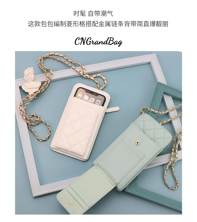 봄과 여름 2022 다이아몬드 정품 양가죽 휴대 전화 가방 여성용 크로스 바디 숄더 체인 동전 지갑 미니 샤넬 스타일 가방스토어 가기