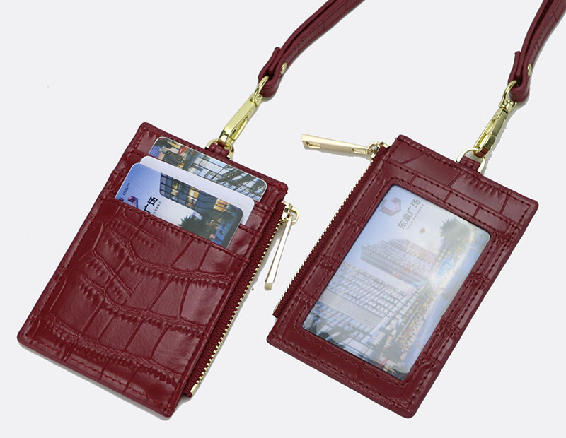 해외 무역 핫 넥 지퍼 가슴 카드 정품 가죽 인증서 카드 케이스 멀티 카드 끈 작업 카드 가죽 교체 카드 케이스스토어 가기