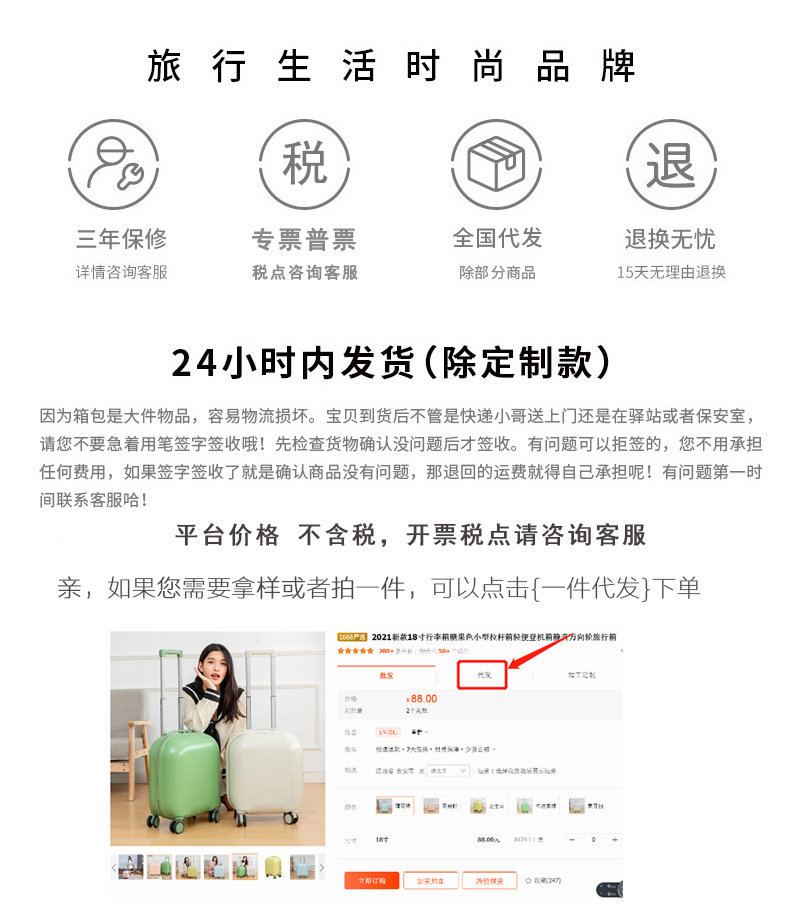 亲,您好,非常感谢您的光临,因为箱包是大件物品,容易物流损坏。宝贝到货后不管是快递小哥送上门还是在驿站或者保安室,请您不要急着用笔签字签收哦!先检查货物确认没问题后才签收。有问题可以拒签的,您不用承担任何费用,如果签字签收了就是确认商品没有问题,那退回的运费就得自己承担呢!有问题第一时间联系客服哈!谢谢您的理解与支持!