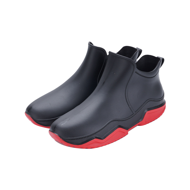 • 858 블랙 레드 하단 로우탑 레인부츠