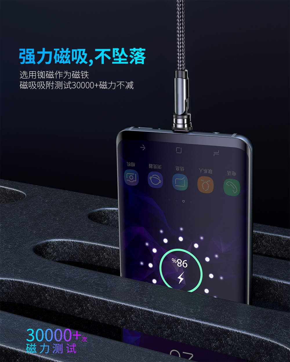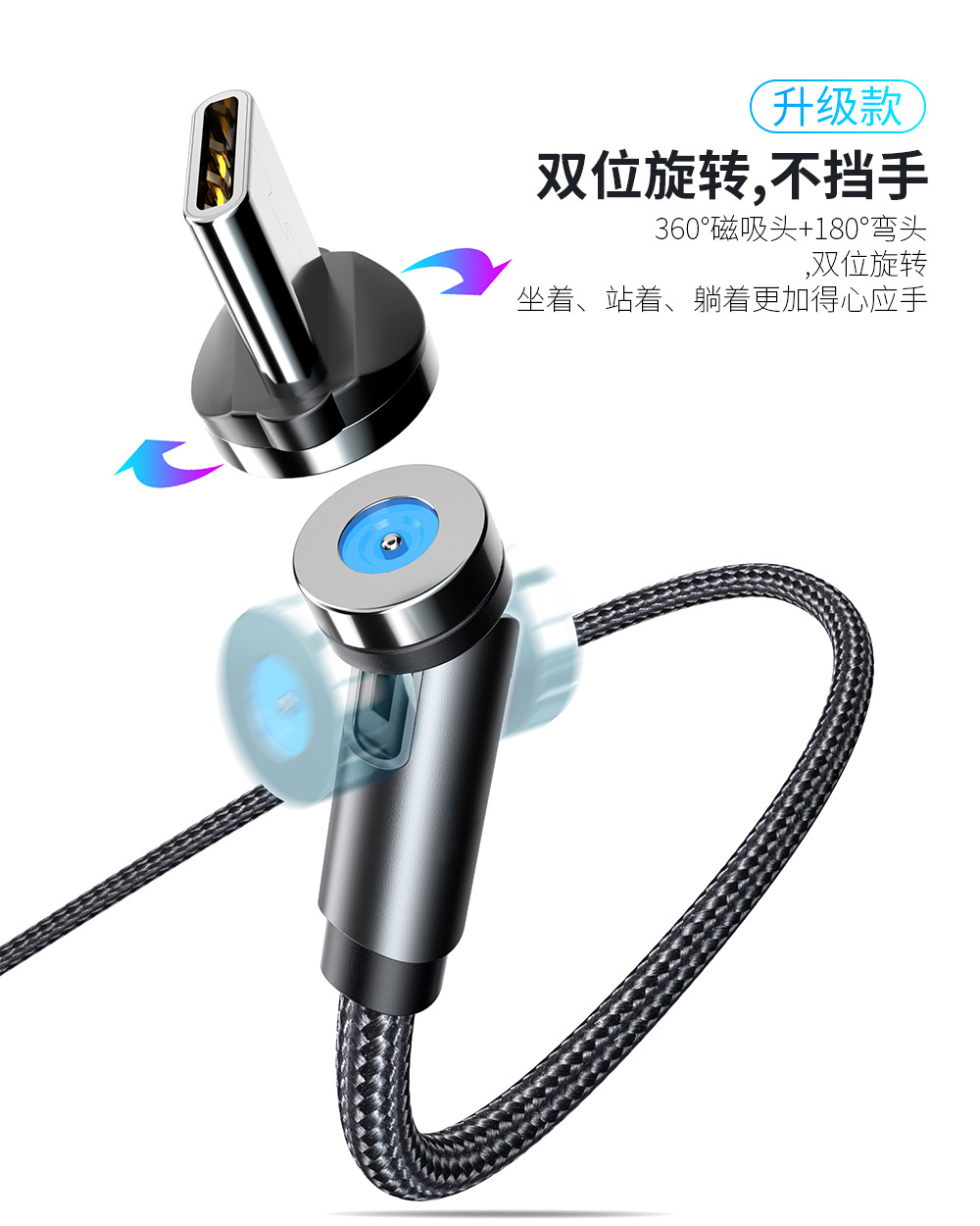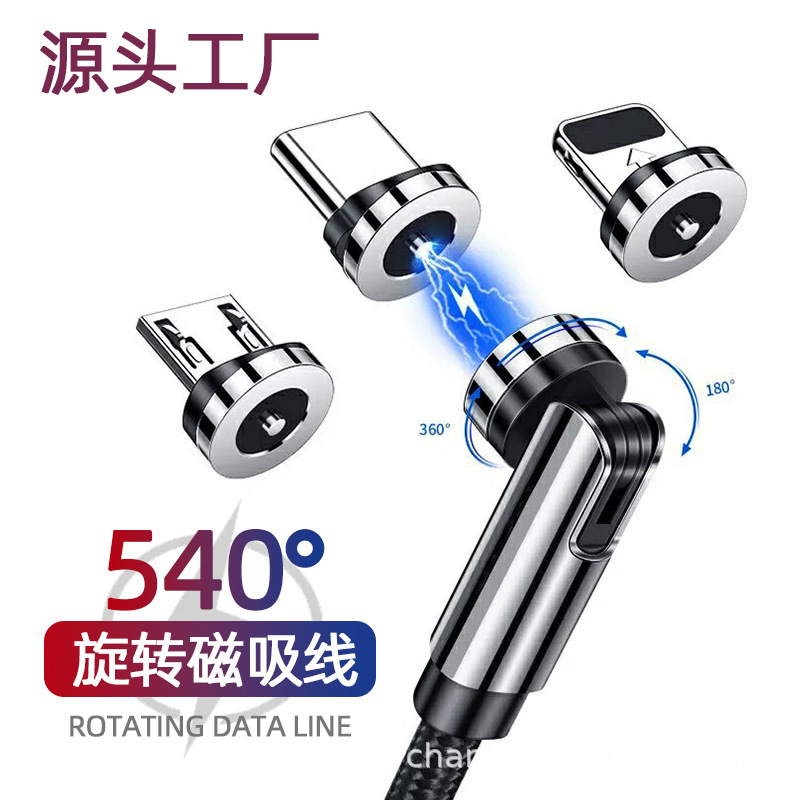 540도 자석 데이터 케이블, 회전형 자석 3-in-1 충전 케이블, 크로스보더 직조 자석 케이블