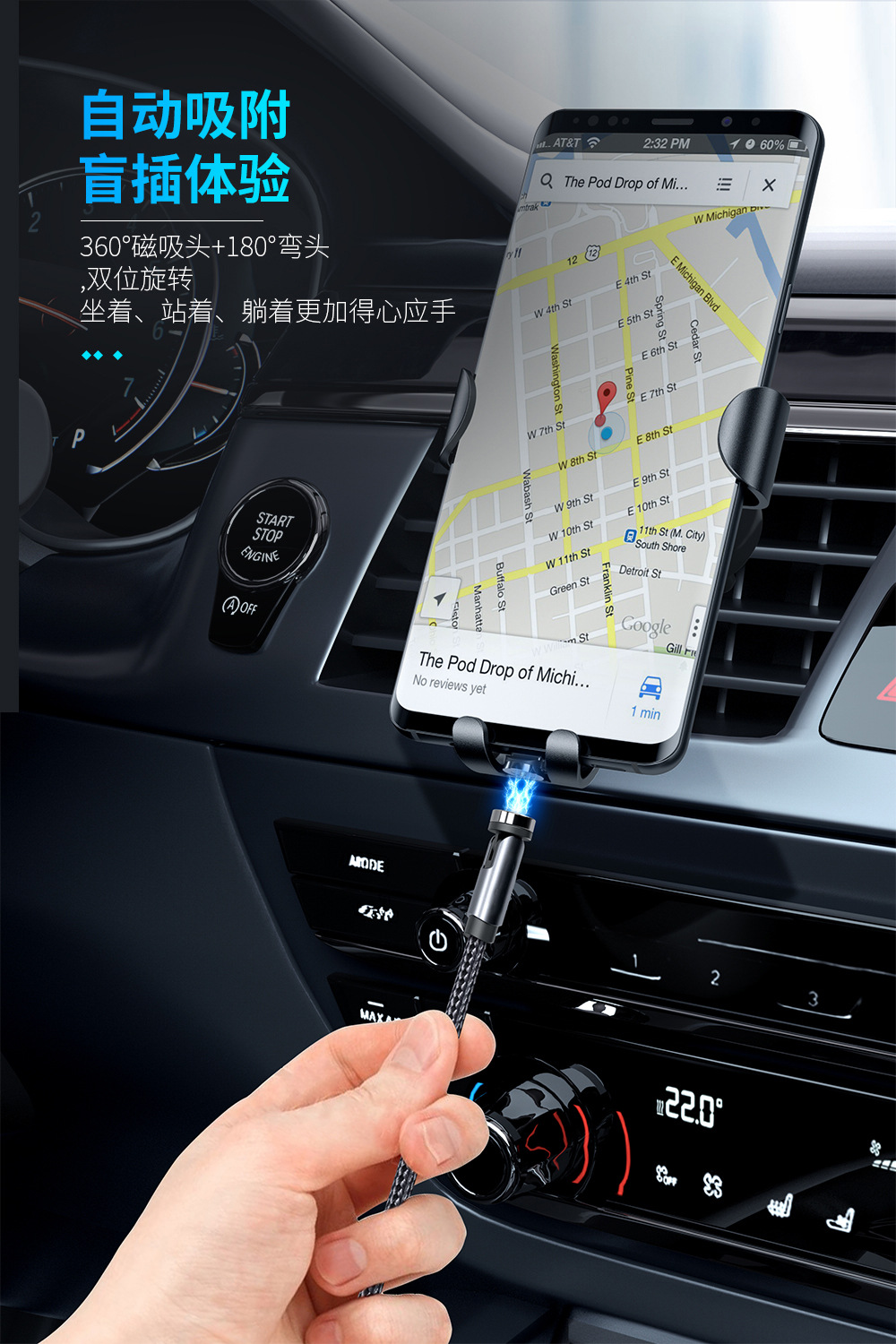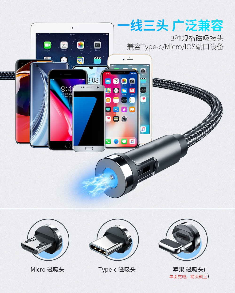 540도 자석 데이터 케이블, 회전형 자석 3-in-1 충전 케이블, 크로스보더 직조 자석 케이블스토어 가기