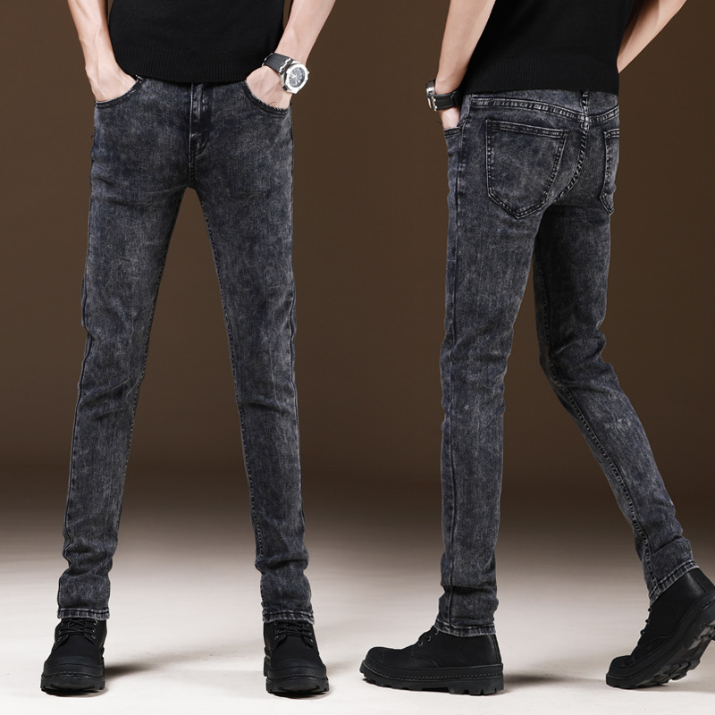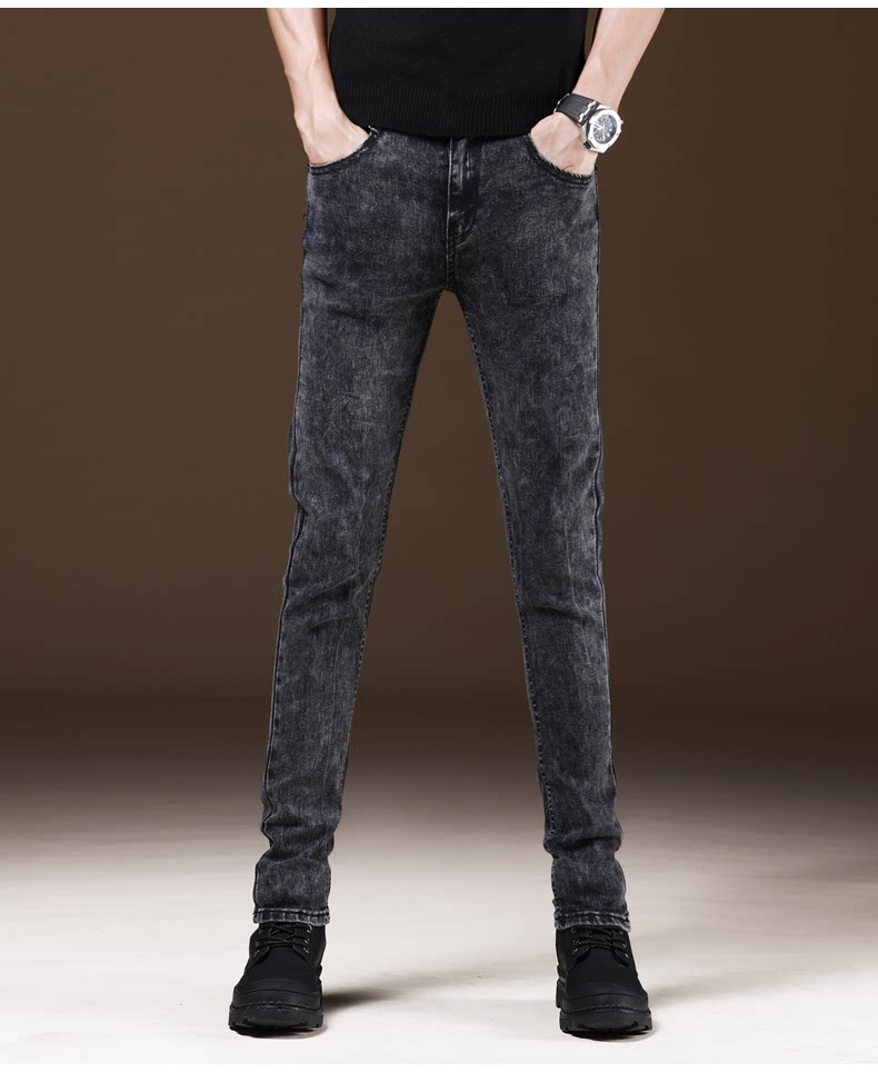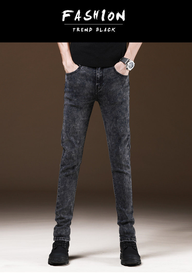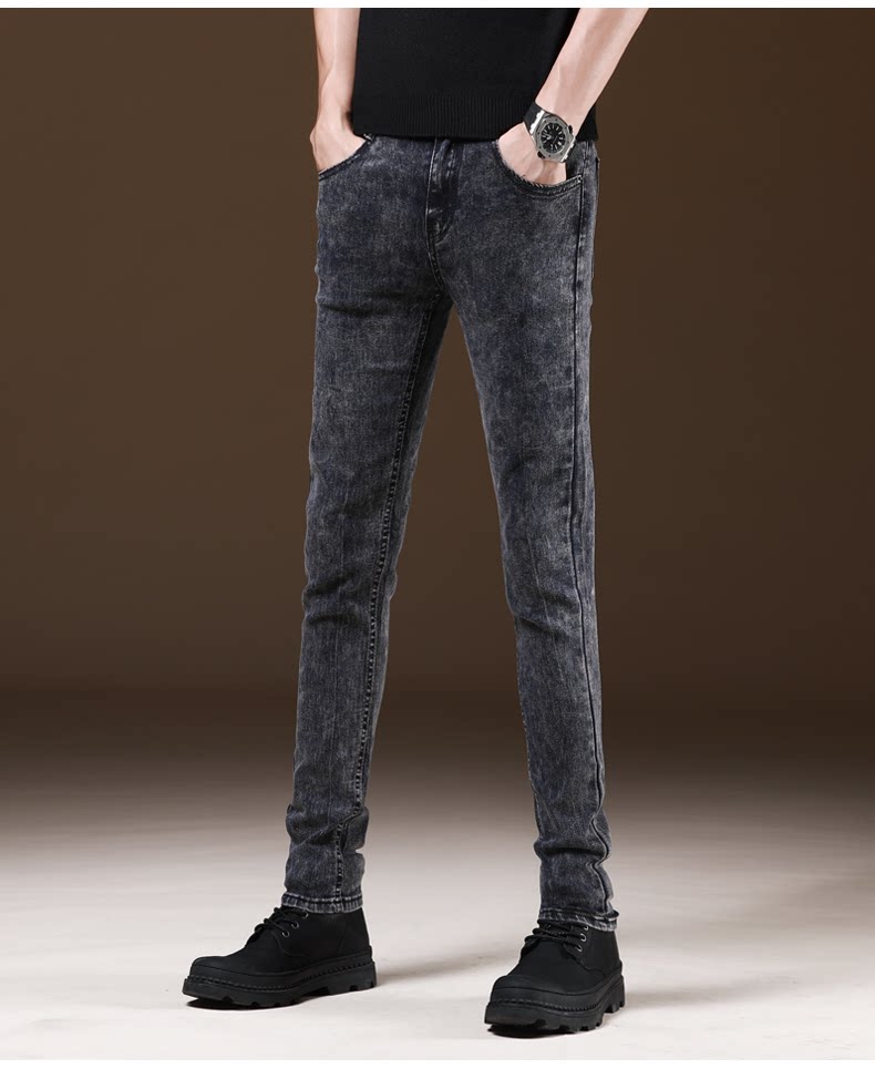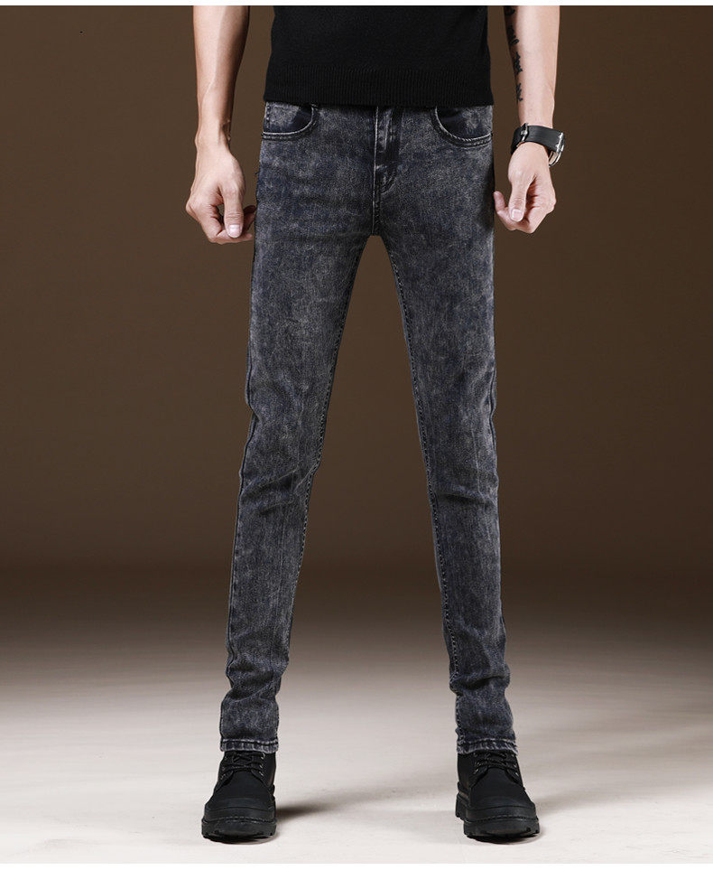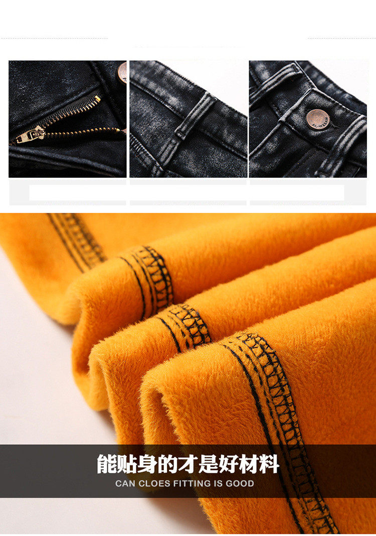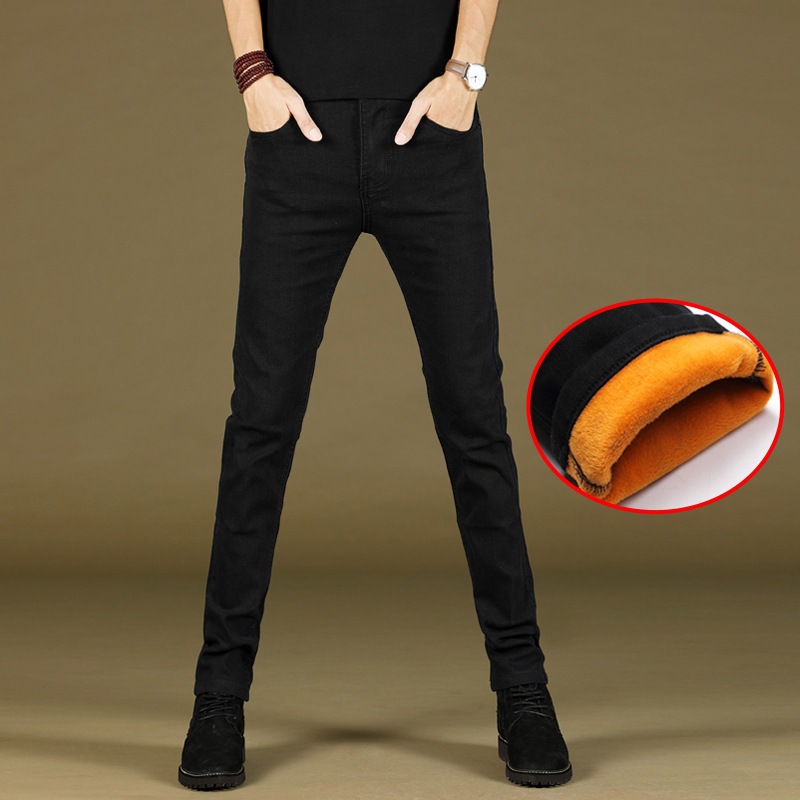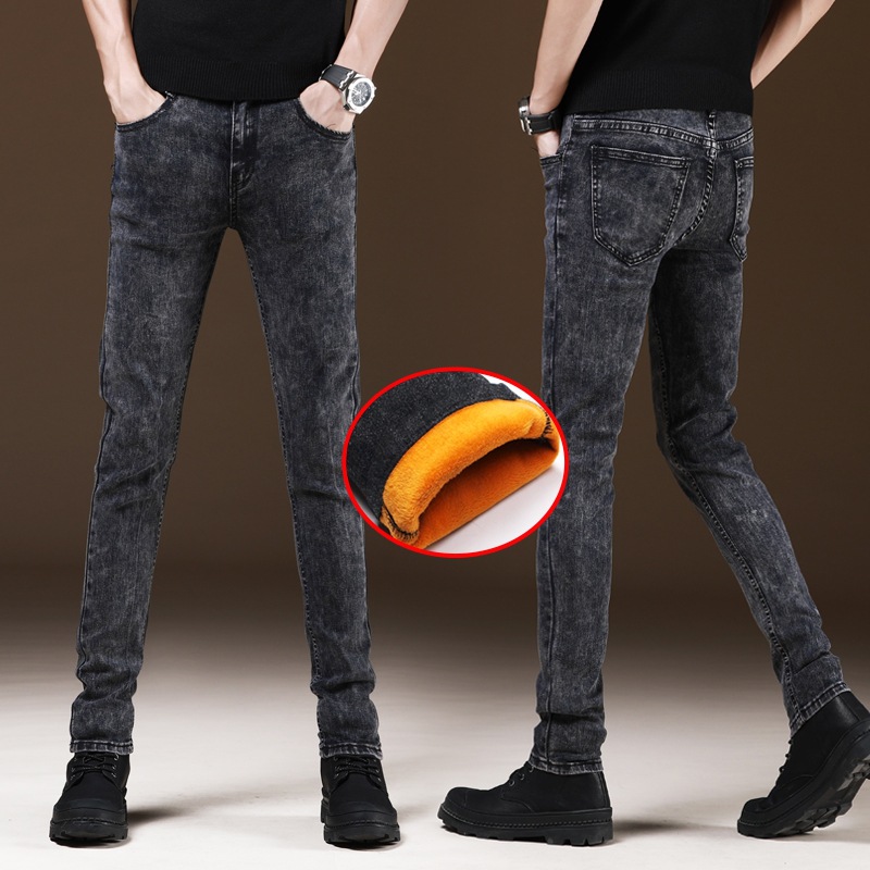 새로운 겨울 유행 브랜드 기모 청바지 남성 슬림핏 스키니 캐주얼 바지 한국 긴 바지 가을과 겨울 두꺼운스토어 가기
