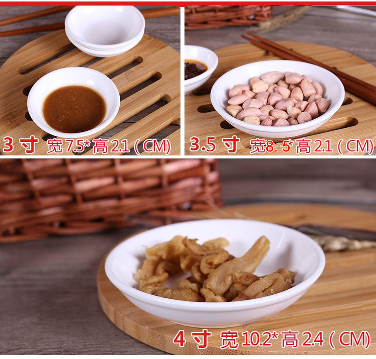 (10 팩) 순백색 세라믹 접시 소스 조미료 소스 식초 접시 소스 뼈 접시 호텔 가정용 도자기 접시