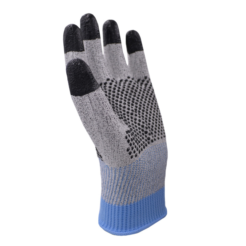HTR 0050 니트릴 손가락 담그는 절단 방지 장갑 니트 손목 미끄럼 방지 내마모성 야외스토어 가기