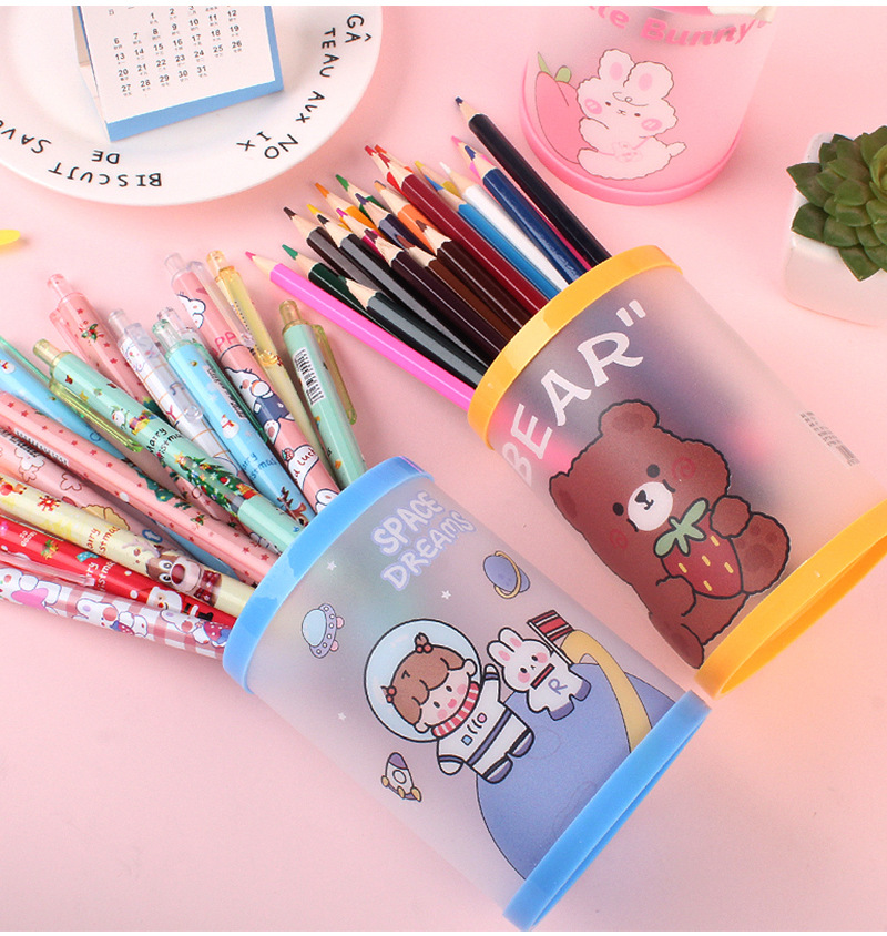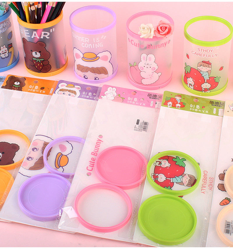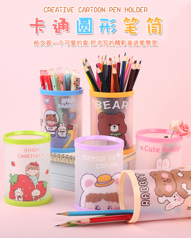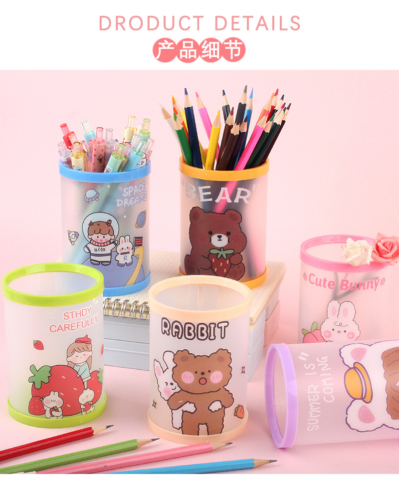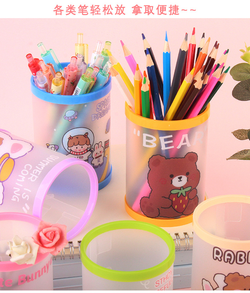 크리 에이 티브 접이식 펜 홀더 다기능 데스크탑 사무실 보관 상자 어린이 귀여운 문구 라운드 펜 배럴 만화 펜 상자