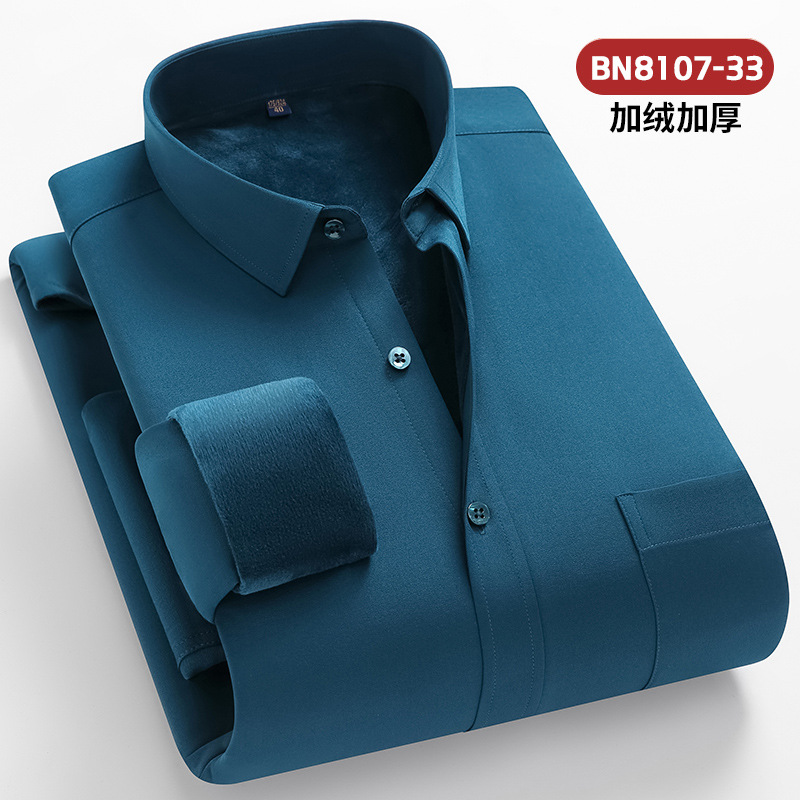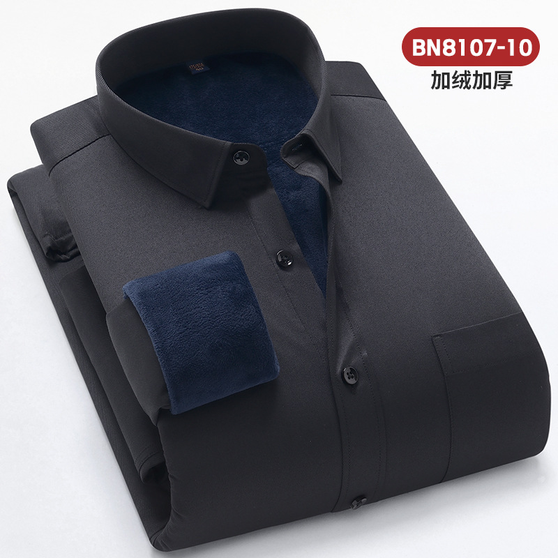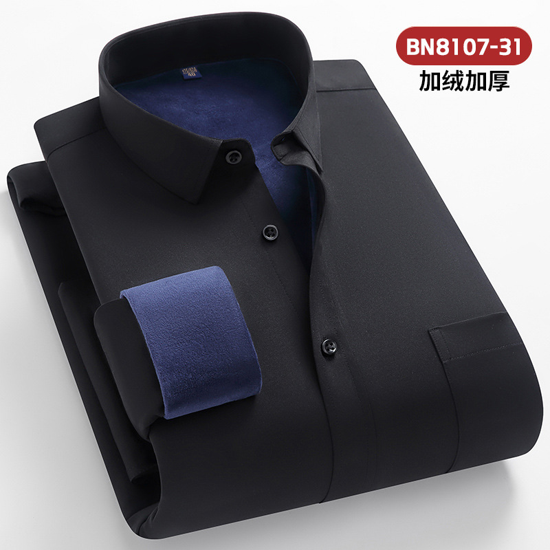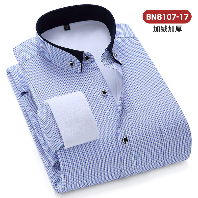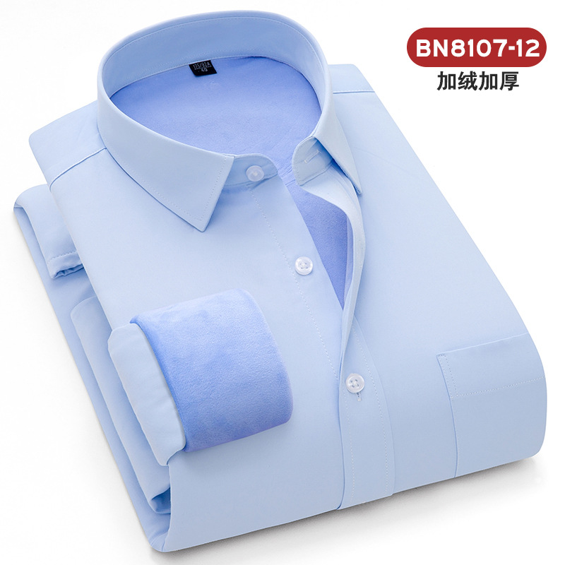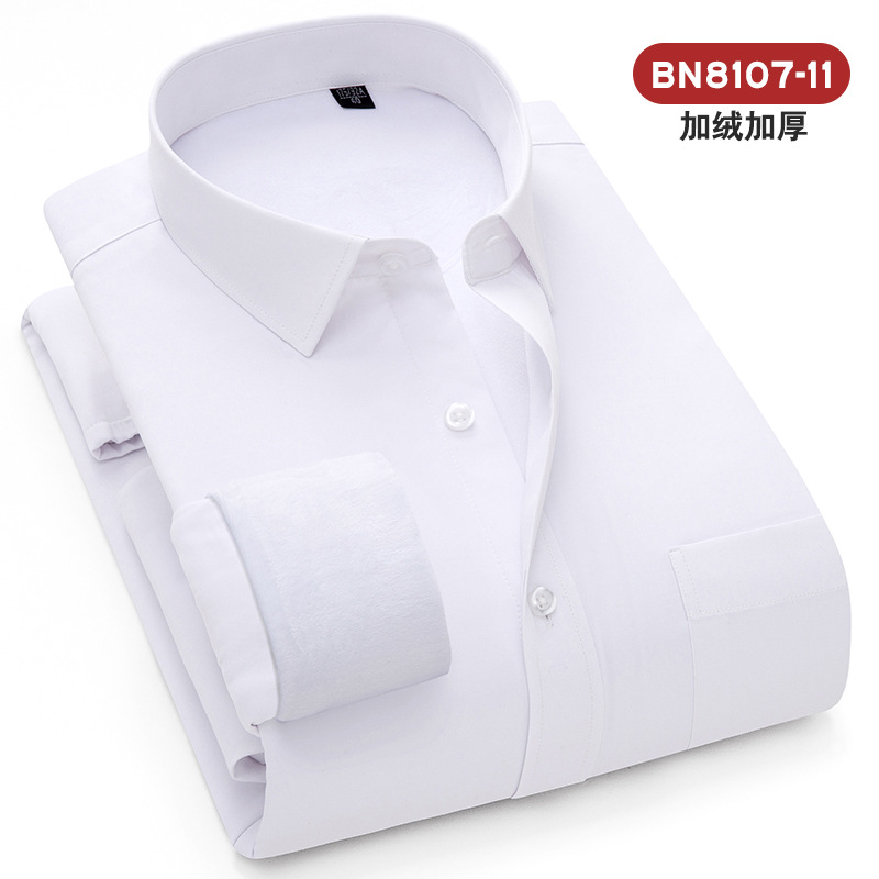 2025 겨울 신상 비즈니스 캐주얼 슬림핏 이중 레이어 플리스 안감 두꺼운 보온 셔츠 남성 긴팔 흰색 셔츠 큰 사이즈스토어 가기