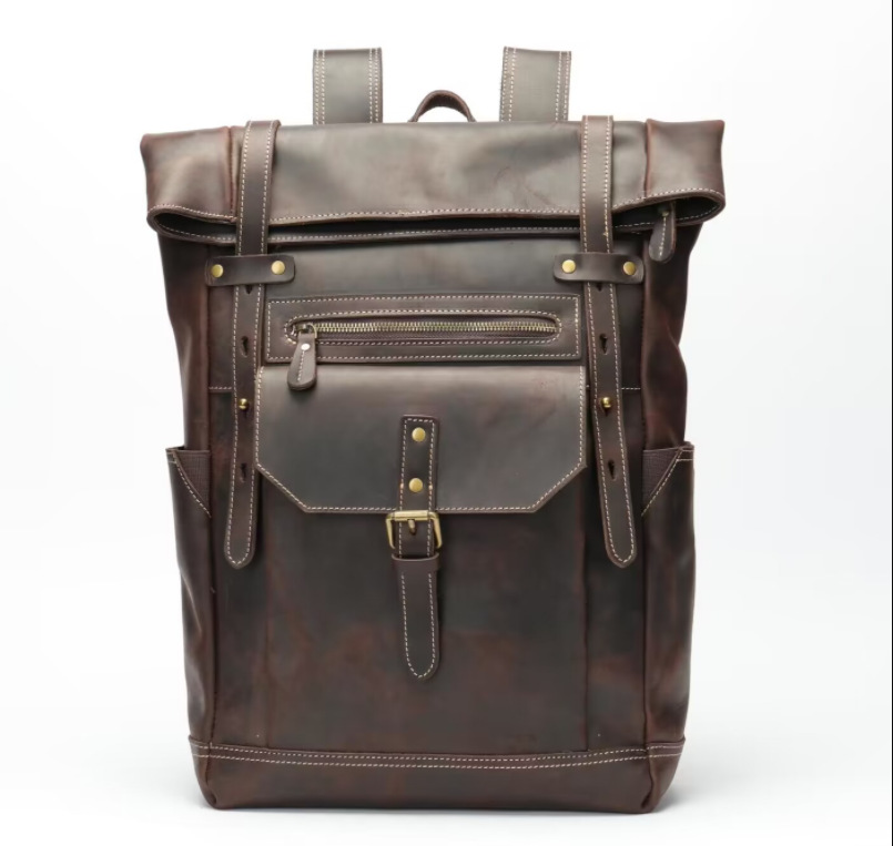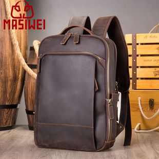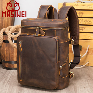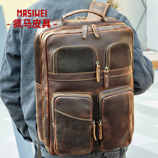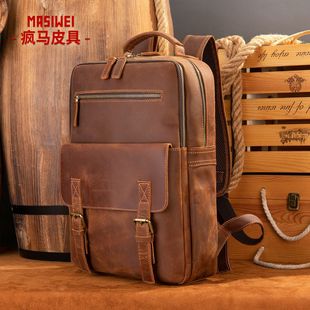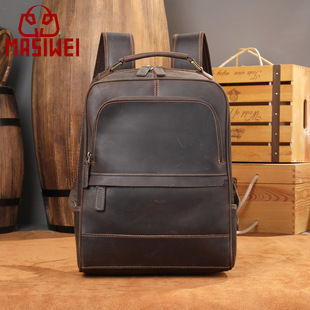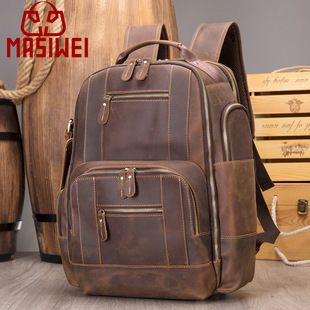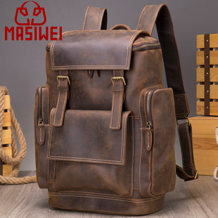 미친 말 가죽 배낭 남자의 정품 가죽 배낭 레트로 대용량 야외 여행 등산 배낭 남자의 가방 도매