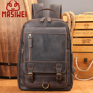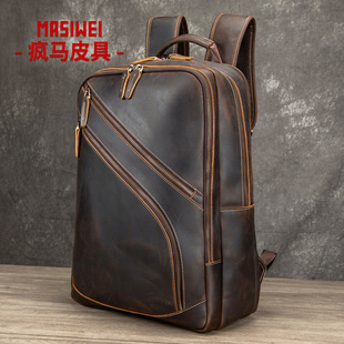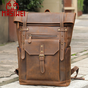 미친 말 가죽 배낭 남자의 정품 가죽 배낭 레트로 대용량 야외 여행 등산 배낭 남자의 가방 도매스토어 가기