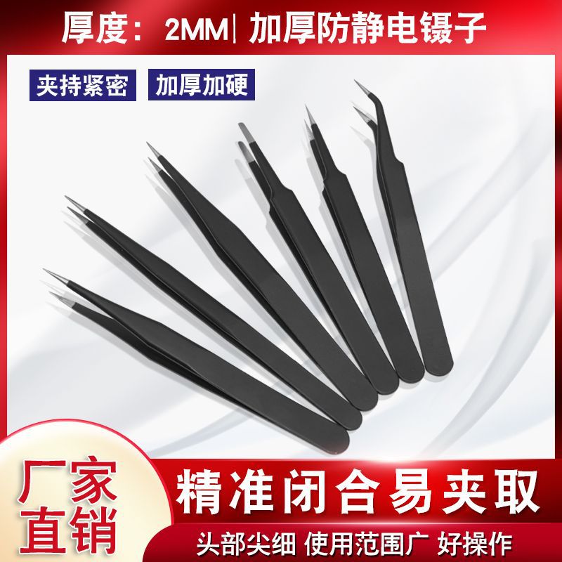 두꺼운 2mm 스테인레스 스틸 원형 가장자리 핀셋 ESD 뾰족한 팔꿈치 검은 핀셋 수리 도구 새 둥지 선택 모발 이식