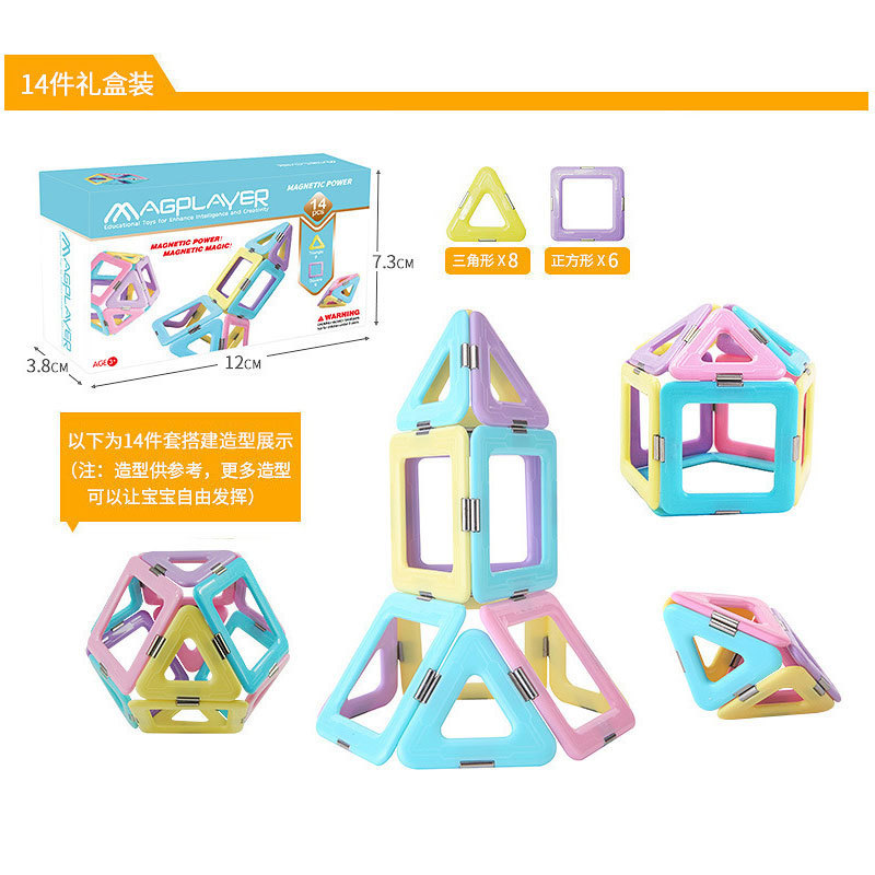 1.此款磁性积木是一款可以360度旋转,可互相拼搭的积木。非常适合全家一起同乐的积木组。