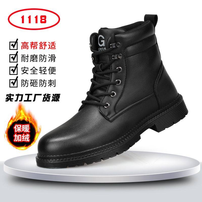 보호 신발 남성용 겨울 하이탑 스매싱 방지 및 피어싱 방지 편안한 방수 내마모성 기모 보온 안전 보호 작업 신발스토어 가기