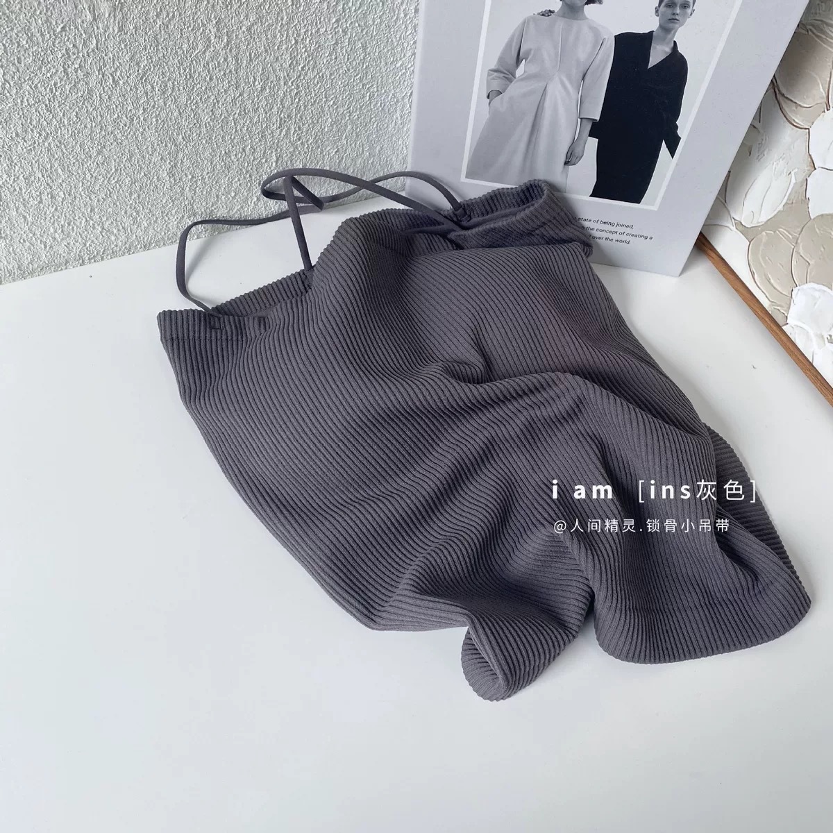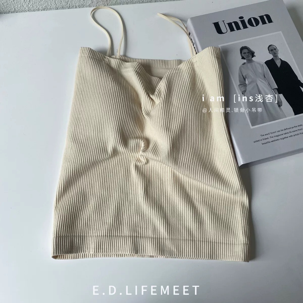 신상품 원피스 스레드 캐미솔 조끼 여성용 아름다운 등 고정 가슴 패드 Instagram 스타일 모든 매치 탑 트렌디