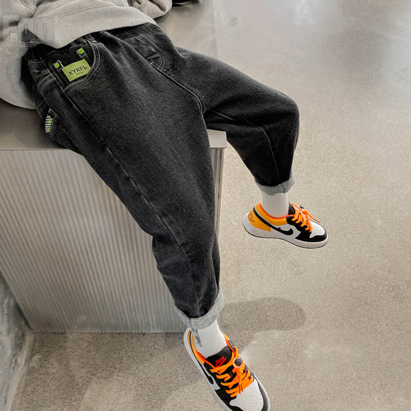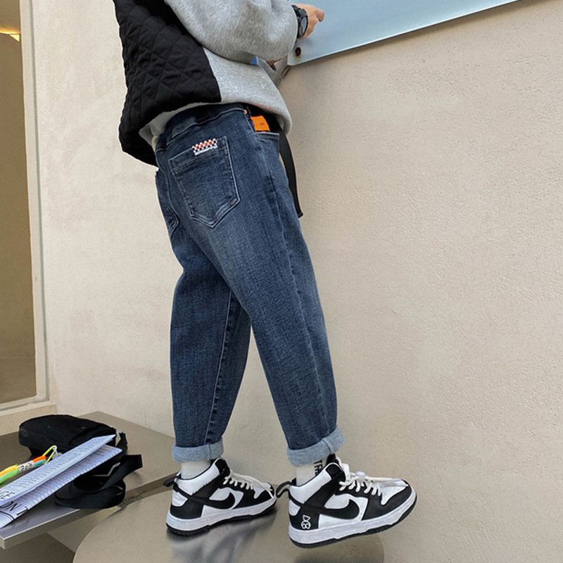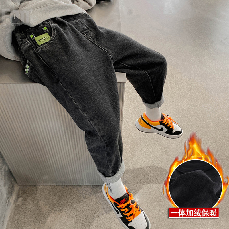 남아용 바지 2025 봄 가을 신상 중대형 아동용 청바지 가을 겨울 한국 스타일 일체형 벨벳 슬림핏 스키니 팬츠 트렌디스토어 가기