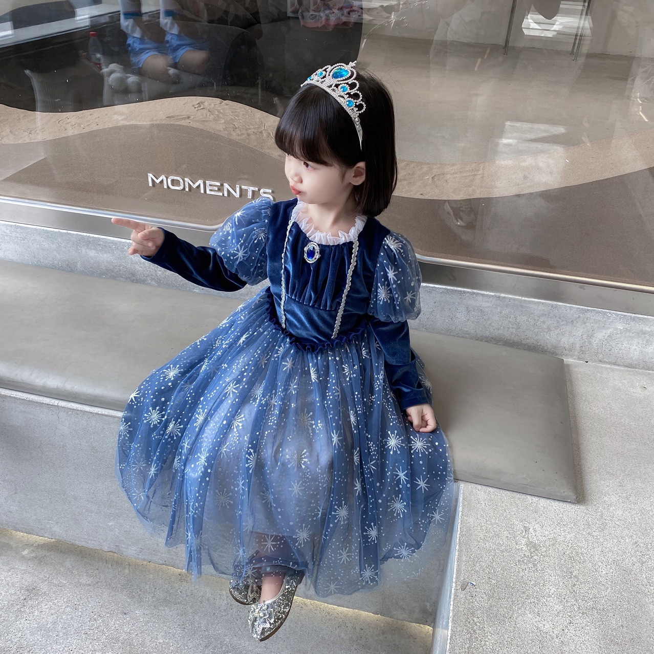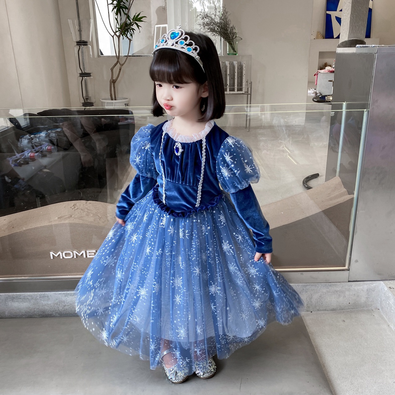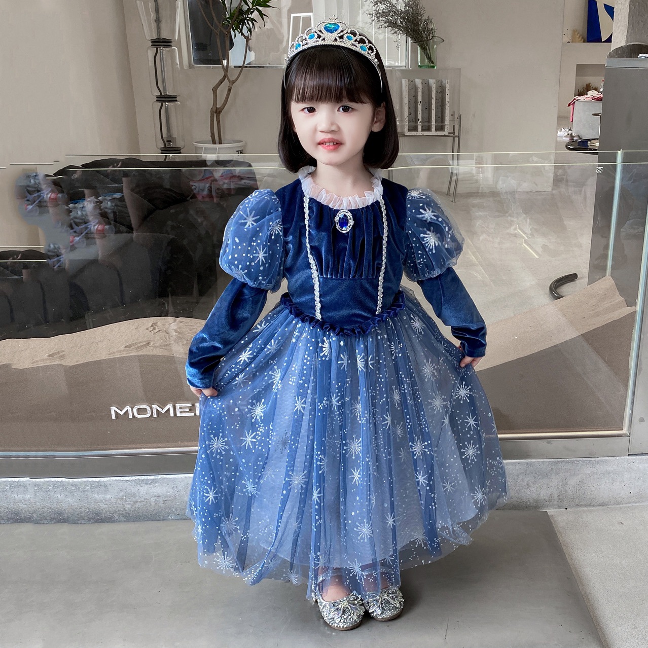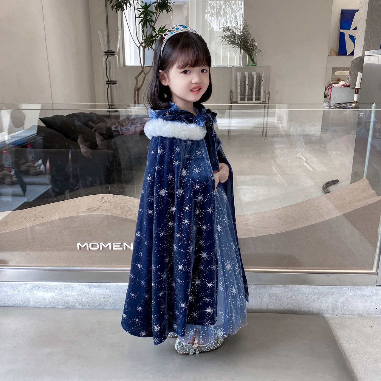 2025 가을, 겨울 겨울왕국 엘사 공주 드레스 망토 정장 소녀 드레스 할로윈 드롭 배송