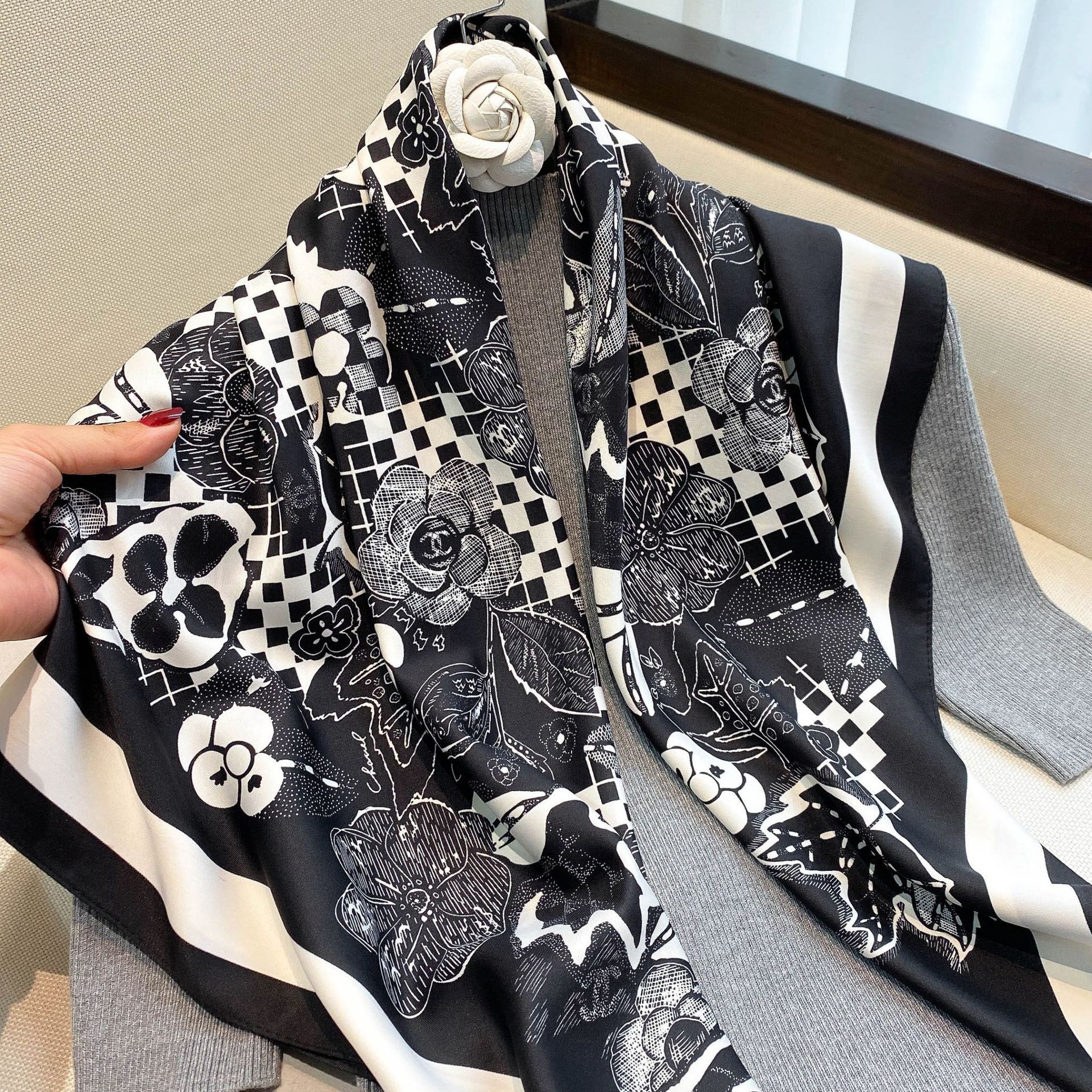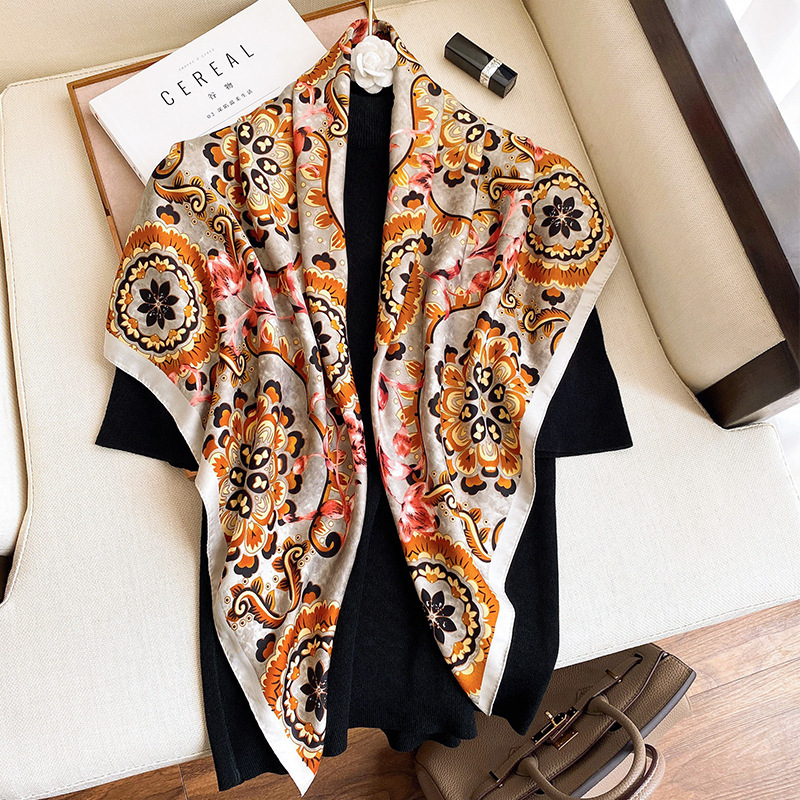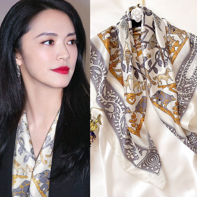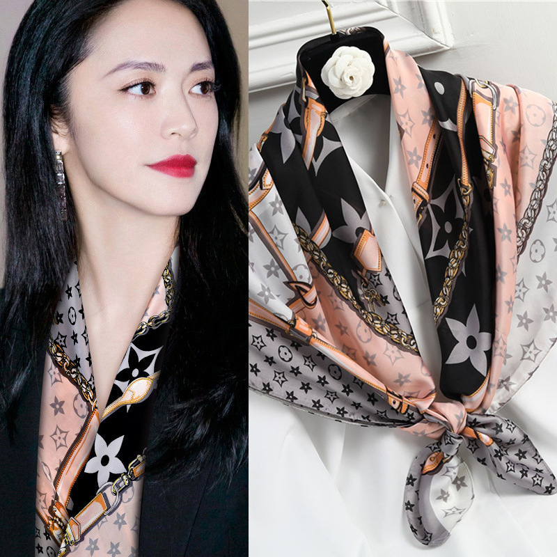 90 대형 사각형 스카프 여성 신작 2024 인기 봄 가을 겨울 스타일 패션 셔츠 작은 사각형 스카프 어머니 스카프